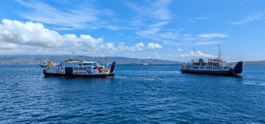 Then we got food at a local place, Eosuijeong Guksu. We got two kinds of dumplings, a kimchi set and a meat set. These fast, local places have a few dishes you either tell the person behind the counter or self-order on a digital machine. They are mostly self service for cutlery, water and side dishes. The dumplings were good and we shared a watermelon tea that wasn’t as good. We paid 17,000 KRW, or $11.97. Next we purchased tickets to go out on a walkway built where the old bridge was (only $2.81). Also included was a bunker turned into some kind of an art exhibit, in there were some videos. It was crowded and other people were controlling the video selection, so we left. We did a few photo ops and meandered.