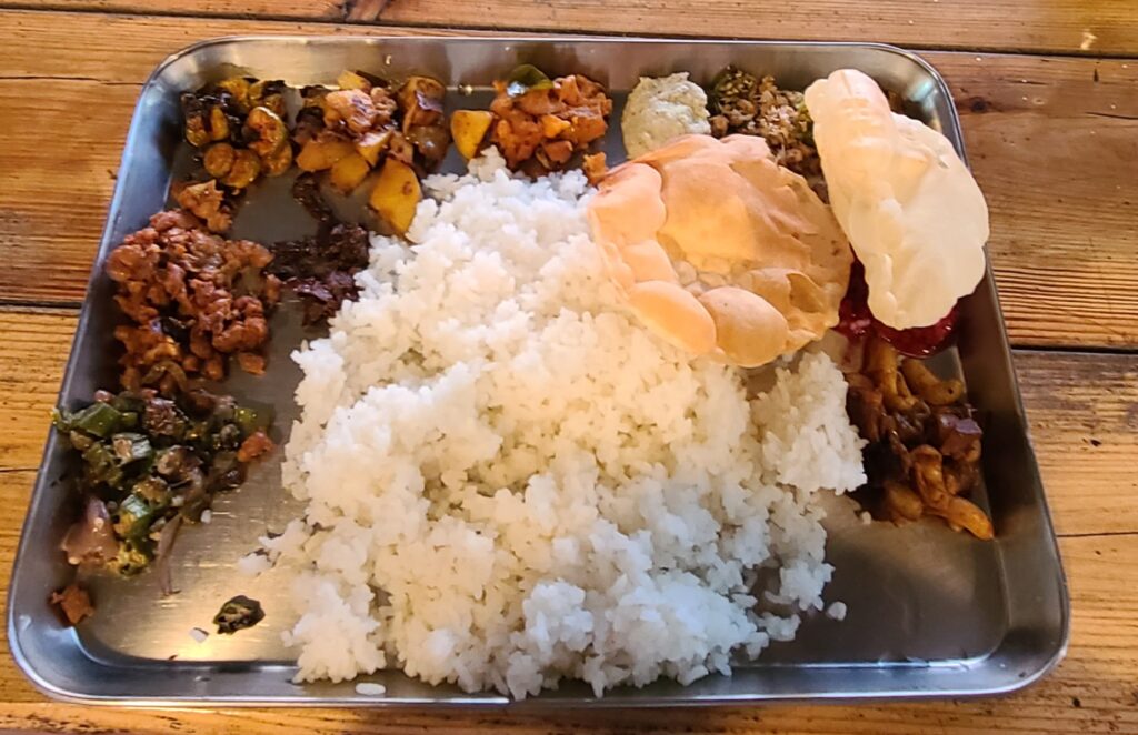 We went back out for sunset and dinner. We opted for a change, and went to Sea Shore Restaurant. We had been there once before, but only for drinks. Sunset went early but was still good while we waited for our food. We each had a pineapple lassi. I ordered Noodles (spaghetti type) with chicken and veggies of carrots, poblano peppers and a little bit of a milder chili pepper. It was so aromatic with anise and other spices. Jeff ordered the Veg Thali. This is an assortment of small, numerous “bits” (sauteed okra w/onion; brown bean in a sauce; pickled, mild chilies sauteed w/onion; potatoes w/onion; next maybe eggplant ??; green mango-ginger chutney; hotter chilies with something??; beetroot puree, and aromatic noodles) all arranged around rice served on a platter. There also was an accompaniment of a gravy/sauce and two pieces of papadum. Mine was good, interesting twist with the aromatics. Jeff’s was super excellent so many different flavors, textures and colors.