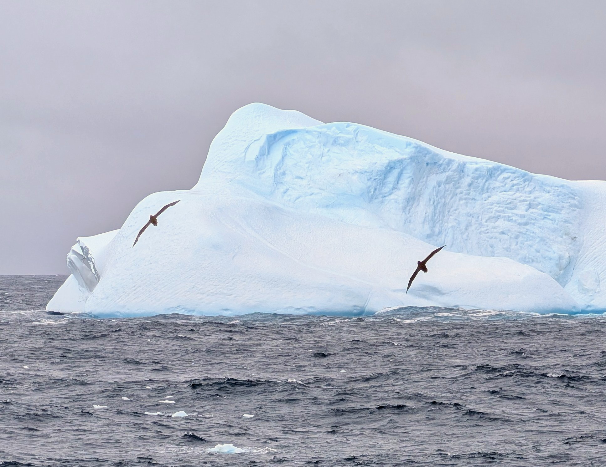 Then back up to the Dome to watch the sea. Besides the icebergs there have been soaring Albatross. At 1500 we went for the lecture on a case study of South Georgia Biogeography. Around 1645 the Captain announced whale sightings. So we stayed in our cabin and watched them blowing out air, just breaching the surface enough to see their backs. So awesome. The Captain even slowed the boat some so we could watch. We watched the Wildlife Photography lecture from our room to finish watching the whales!!! (They left by around 1730.)