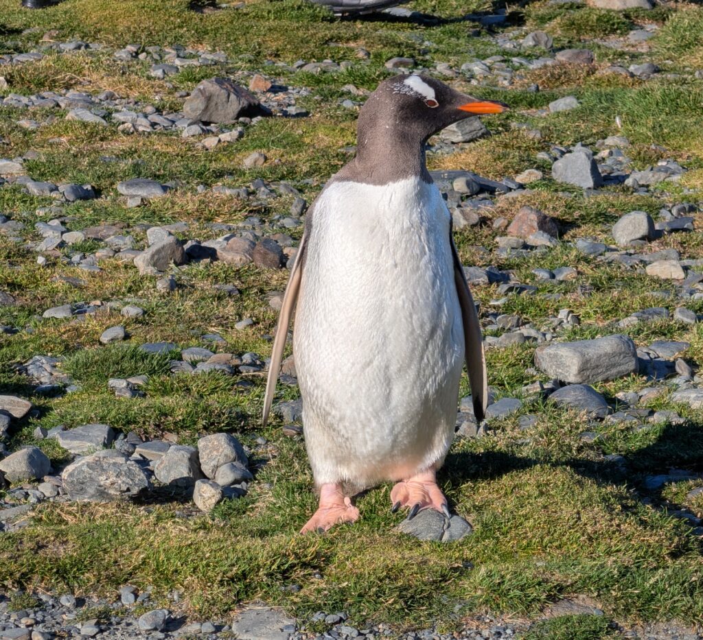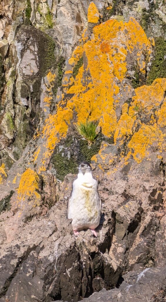 At 0725, we were our Zodiac, zooming to shore. The guides had set up cones for us to trek along. We exited the Zodiac and followed those before us. What an experience to hear the fur seal pups calling out, some trying out weak roars or barks and challenging us. Then the off resonances, almost harmonica like, speaking of the penguins. It was a different kind of symphony that was for sure. We hiked; crossing a small trickle of a stream; then up to the elevated overlook. We just took it all in. I felt honored, privileged, and mostly blessed. Honored because I am in the midst of the homes of these creatures. Privileged because I am one of very few to be here- I keep hearing David Attenborough speaking in my ears. But mostly, I feel blessed because I am witnessing God’s glorious Creation in all its fabulous diversity.