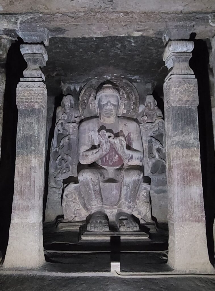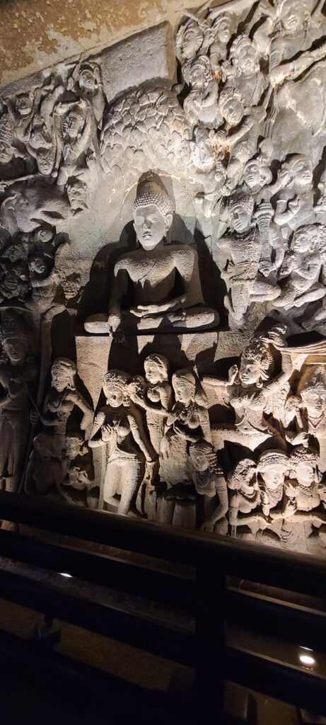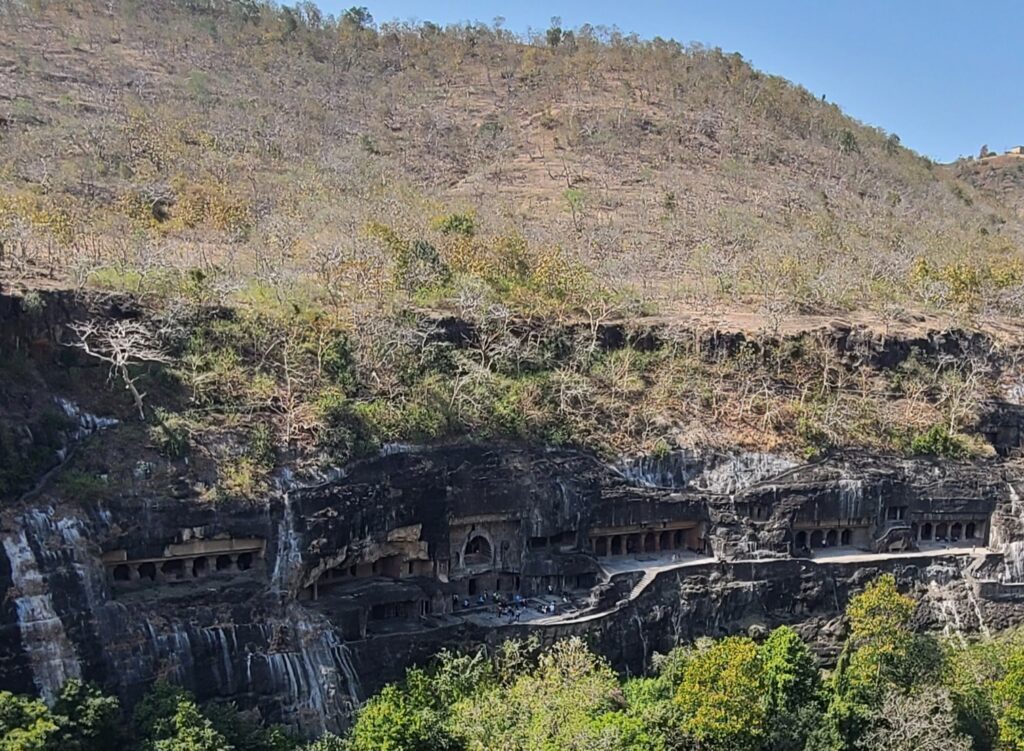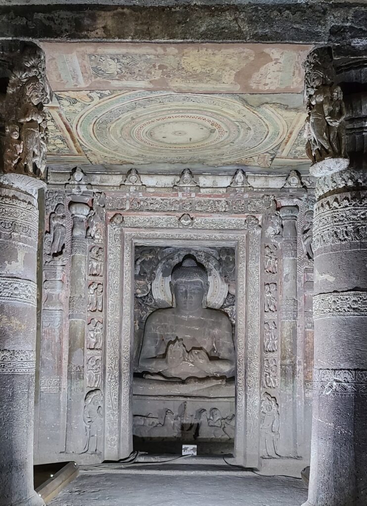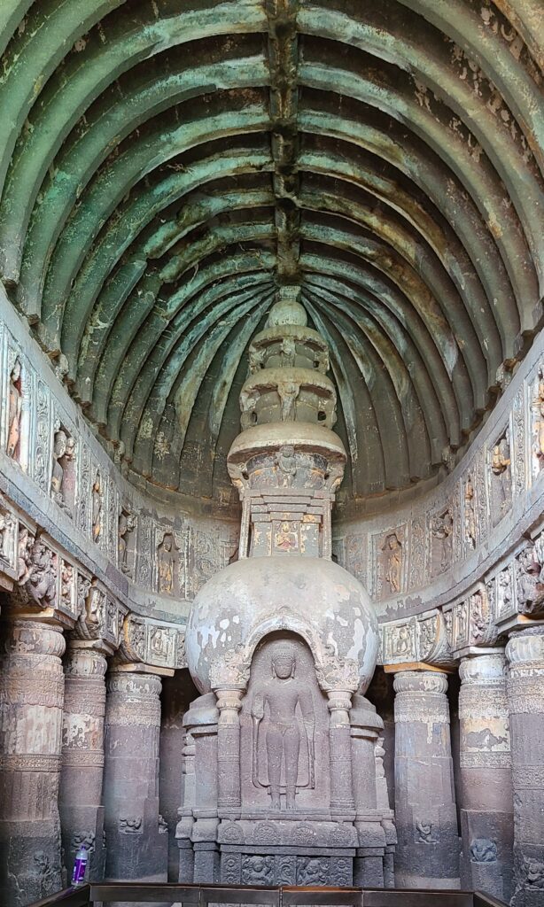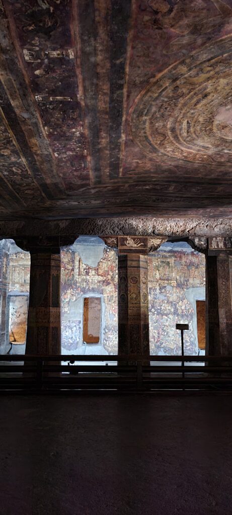 Now the info. The earliest caves date from 200 B.C., but span some time. These Ajanta caves are ‘famous for their painted murals which are the finest surviving examples of ancient Indian art…’  The caves were made by Buddhist monks, and there are thirty of them in various stages of completion and preserved paintings. Of the thirty, there are about five or so no one can get into; there about five that are awesome with some form of preserved paintings and carvings; and then there are a few with stupas.