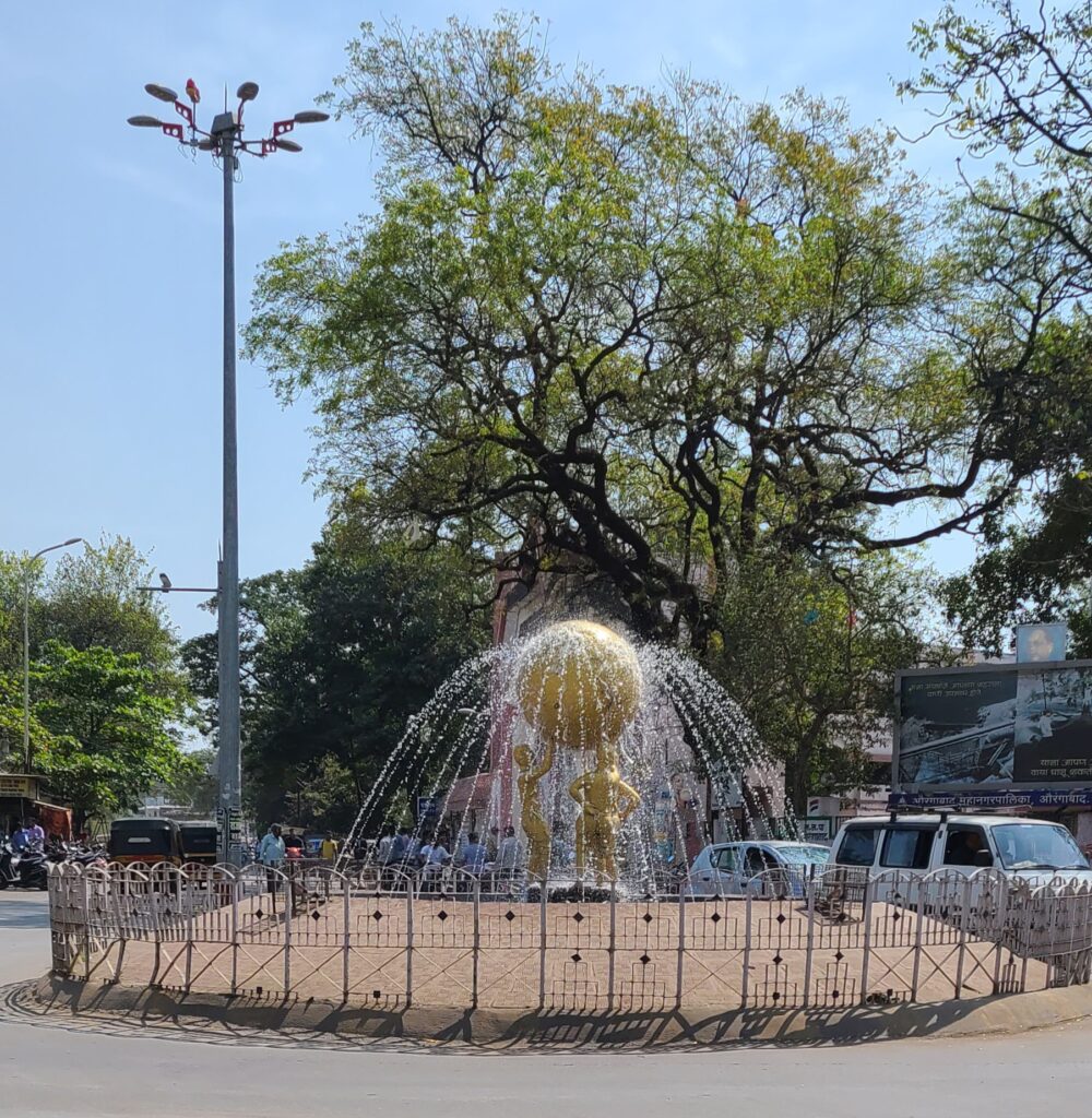Finished we went back to our room and grabbed our bag, then went out and loaded in our tuk-tuk for our tour today.Our first place on this city tour began at Panchakki, which is a water mill. It is dated from 1744 A.D. Immediately, I thought it is just older than America, being a country! The mill has an underground water channel that starts 10 kms (six miles) away from a mountain. The water arrives here and spins a flanged horizontal fan that then spins the mill. It still works, but not sure of its efficiency – the grinding stones do not touch all the way around now. Anyway, the water is clear and seems clean, which is rare. Also at this site is a very large banyan tree that is 600 years old! The tree makes this water reservoir, mill area seem like a little park. There is a mosque and a tomb here also, mentioned only because it is included in the ticket price. We loaded back up and on to next part of tour.