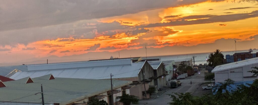 Up and about by 0600!! So we went out and about, walking/exploring our new place. Our condo is close to the ocean. We can see it from our window, but the waterside is not readily available and there is not a beach – which we knew. But we have a sunset view from our place. The sun actually sets on an island which may be the island of Iloilo where we started our venture here in the Philippines. Our walk about – even though, so early was still pretty warm. The sun had already come up and was getting toasty. The lowest temperature is only around ten degrees different from the hottest.