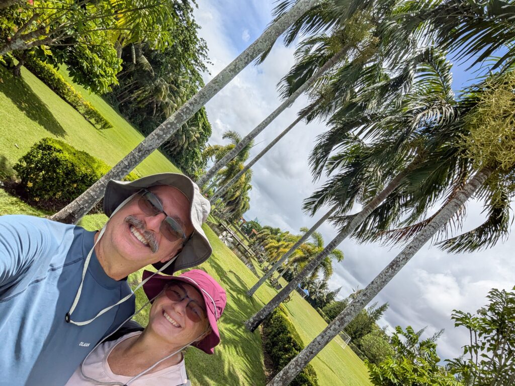 We, neither one slept well, for whatever reason. I did not get out of bed until 0700 and then laid back down until after eight. I finally feel like my cold is gone except a lingering cough, which is improving. Anyway, we got around and had our Javas and breakfast. I had my last piece of pizza from last night, a yogurt, and an apple. Jeff had Muesli, a yogurt, and an apple. The apples were from the USA! Crazy, but true story!! When we finished we went to the mall across the street to get steps in. The weather says might rain, might not – and the sky seems to verify this maybe/maybe not vibe.
