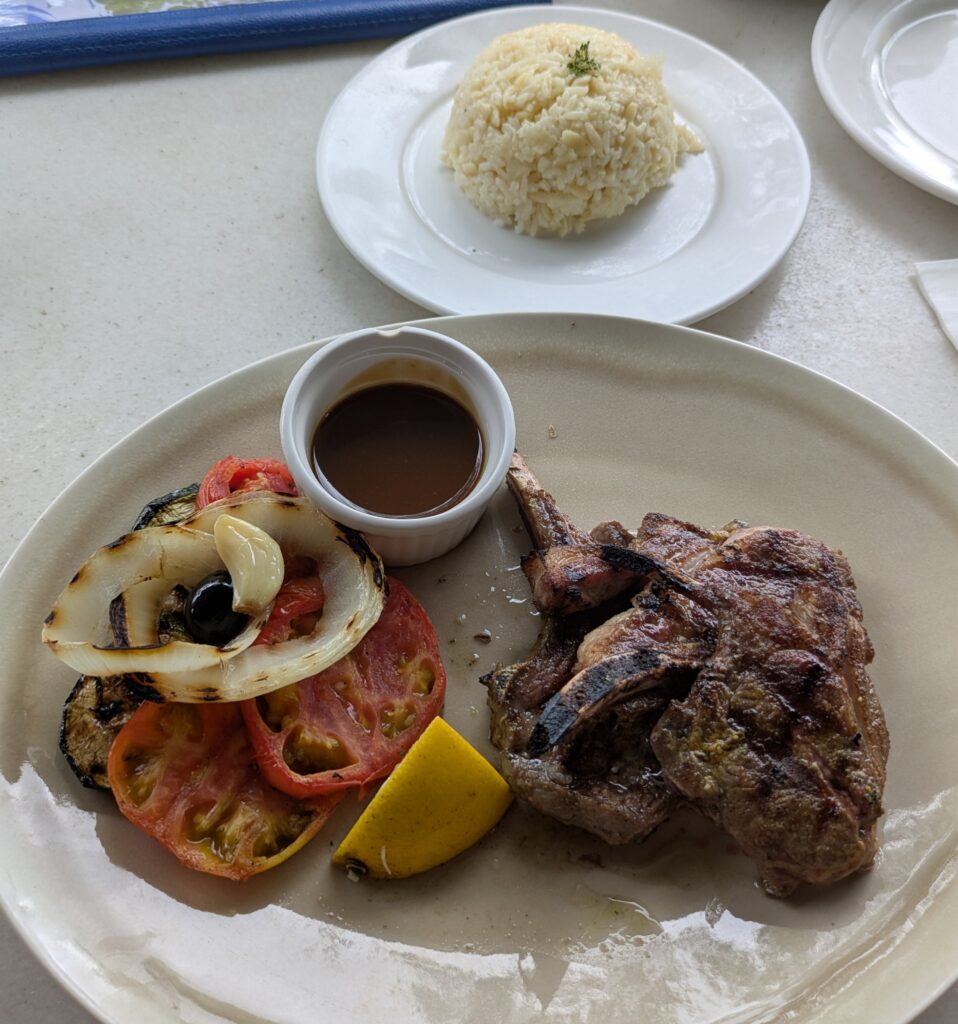 Around one or so, we went out walking to a Greek restaurant, called Lemon and Olives Greek Taverna. I love the name! When I think of Greek food, well lemons and Kalamata olives come to my mind. I had Lemon and Olives Special Lamb Chops with a Worcestershire sauce, Grilled Veggies and Lemon Pilaf; and a Lemon-Cucumber Juice to drink. Jeff had a Souvlaki Plate of Lamb “grilled and drizzled with Chef Takis’ secret Greek sauce, accompanied with garlic, chili and tzatziki sauces,” with fries, veggies, and pita; and he had a San Miguel Beer. Excellent meal even though they did not have Retsina.😋😋 Where we sat, we had really great views – overlooking the Pine City of Baguio. Finished we paid our bill of 1,655.36 PHP, which is $28.88. Then we walked back to our place. The walks to and from the restaurant totaled around six miles! Something I noticed on the walk – we haven’t seen that many cigarette smokers, just an observation.