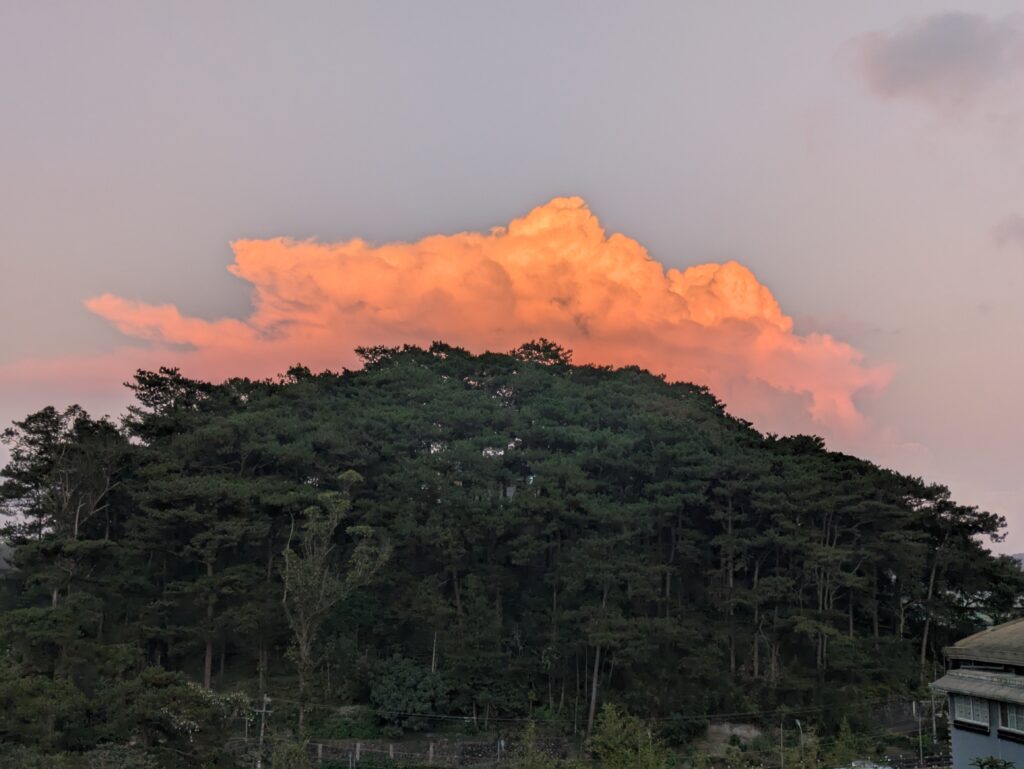 Afternoon became evening… We watched a color display in the eastern sky of sunset. That was cool. This phenomena is called anti-crepuscular rays or anti-solar rays.🤔 (I googled that info🤭) Supper was Greek salad, and some homemade potato chips we had bought in the park. Great day of learning some about Baguio, Philippines!