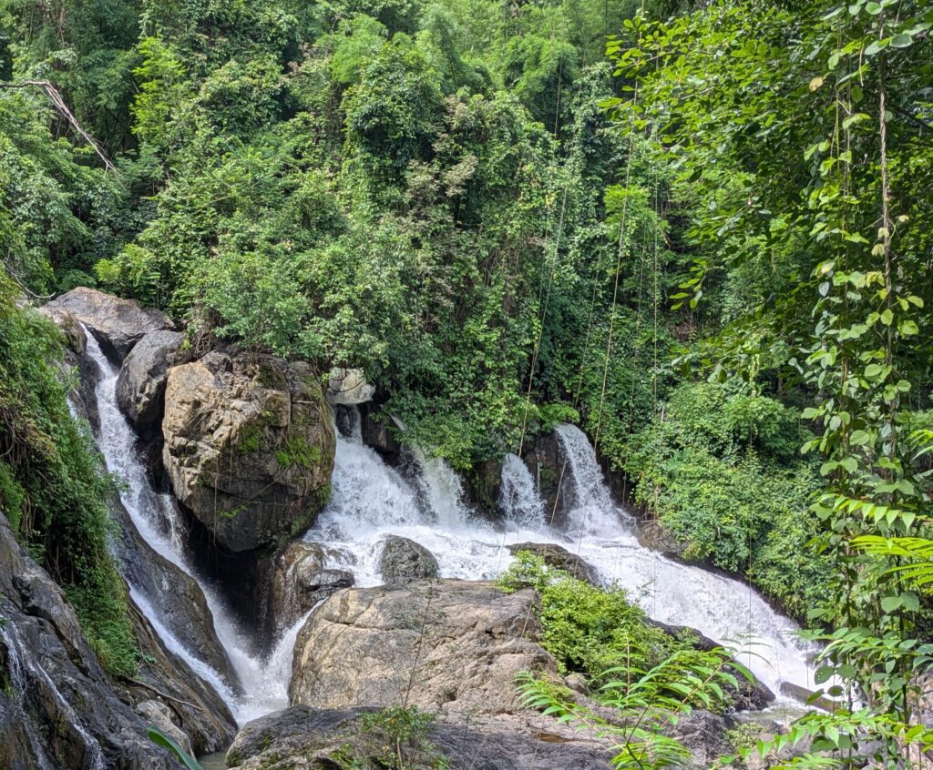 Around 1430 we arrived Pha Sua Waterfall, in the Namtok Pha Suea-Tham Pla National Park. We paid 100 THB each ($3.05), but we weren’t charged for our car! And BONUS we could go to another spot on this ticket!! It was a short easy paved walk to a viewpoint. But, oh my! What a waterfall!! It was going gangbusters and full of power! We did our pics and went back to our car. We backtracked a bit to the other place our ticket let us go. Jeff remembered the name of it, from 14 years ago! It was called the Fish Cave. It was… well, more fish and the fish were swimming in hole in the rock, “a cave”… for them. So I guess fish cave is accurate. I was underwhelmed and glad I didn’t remember it from before. The fish were large and are a type of Carp.