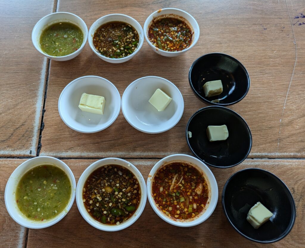 Around 1430 we head out. First we went to the coffee roasters, Phil Coffee Co., and bought me some coffee. It is a medium, dark roast Thai coffee, that smelled great. I am looking forward to trying. Fresh ground coffee in hand, we set off for our main destination- dinner. We are going to Best Beef. First a disclaimer it is a Buffet. But it has done well and has expanded to five branches here in Bangkok. It is a “hotpot”- in this case, meaning, a hot round grill brought to the table and you cook your own food that you select from a large ‘placemat-sized’ menu.