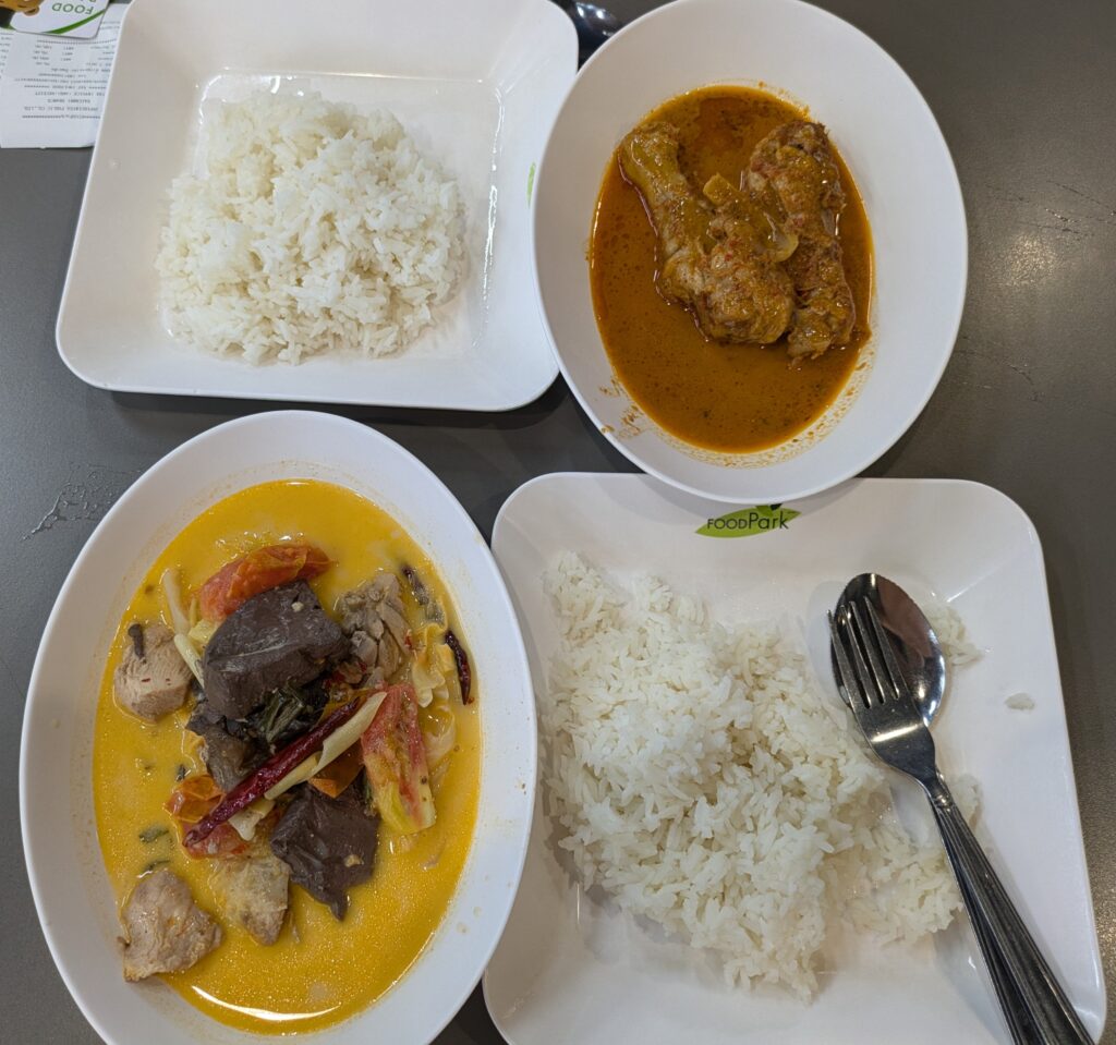 Anyway, we walked all around to see what we wanted, and get a rough estimate for the card. Jeff got the card and we had Chicken Massaman Curry, and Tom Kha Kai (which seems to be the same as Tom Kha Gai, according to Google); and two sides rice. As we were eating, we both realized it is our first curry in Thailand! We both love Massaman Curry and this one was good enough, not great. The soup was actually lukewarm so that dinged it, but the flavor was good, again – not great. But they were almost comfort food, so sometimes this is okay. Lunch cost us 150 Baht ($4.17). That was the same price as my haircut – pre-tip!