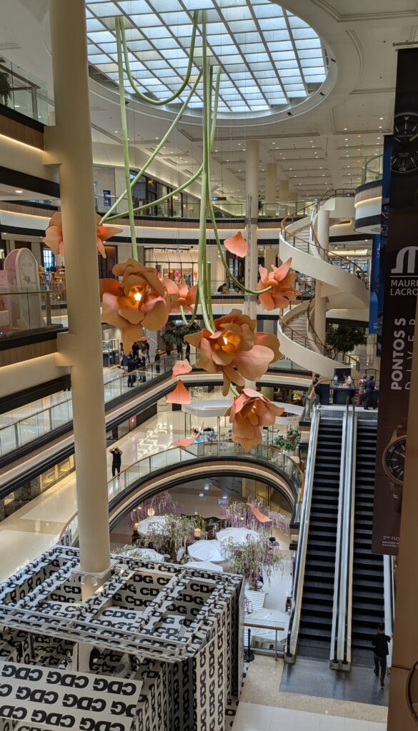 We noticed, again, you just can not count on weather people! No rain was happening… So we headed out. Of course, now it started to rain. We ducked under the awning of the BTS’s up escalator and boarded – instead of walking and getting our steps. It really rained while we were going to a mall. Thankfully, we were on the sky train. So the weather people have a reprieve! 😂 They were right today.