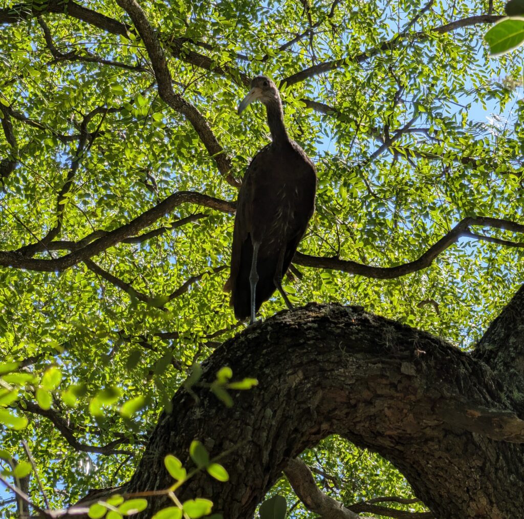 I did blog some and Jeff read. A huge raptor-type bird flew on to the abandoned building across from us. It was eating on something it bought up with it. Two more of the same birds came to share, but it was not having that and flew away. I was able to capture one and Google Lens identified it as a Crested Caracara. Lunch was some leftover Cappelletti pasta and sauce.
