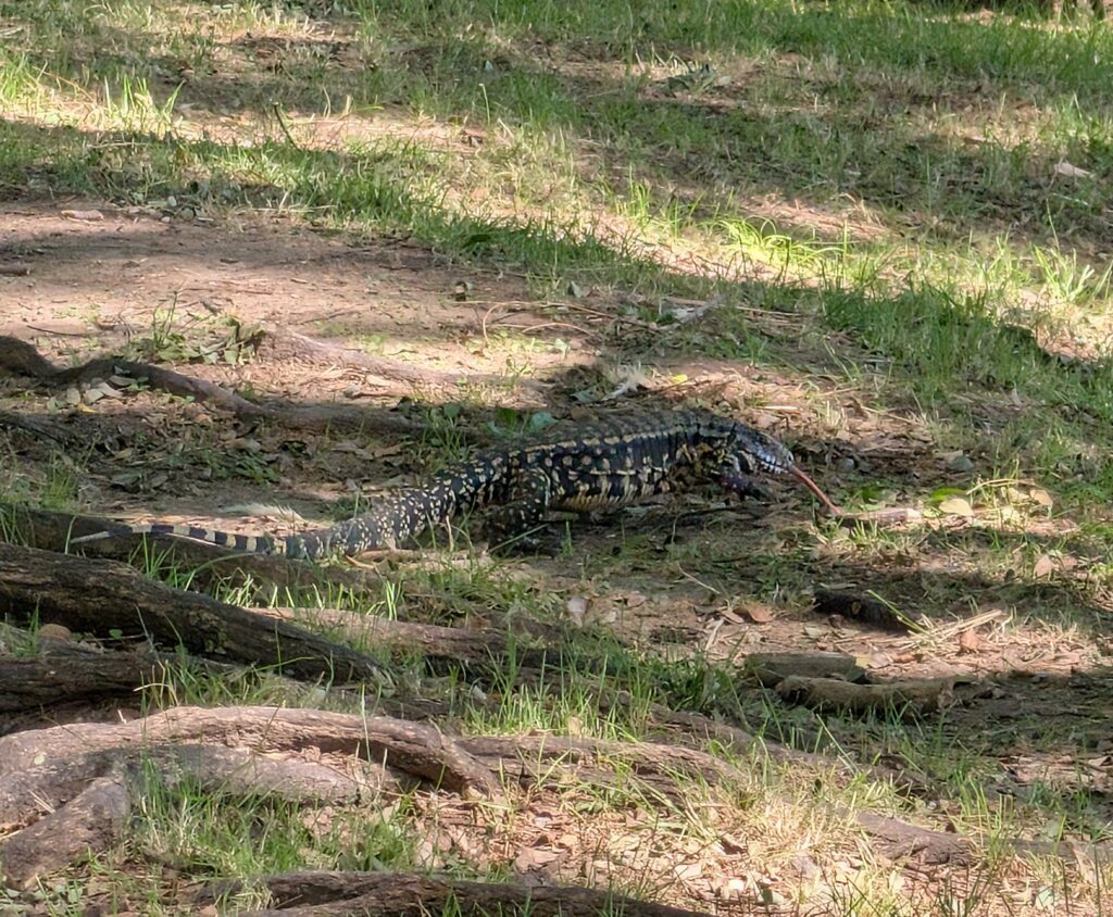 From here we moved on to the ‘Reserva Ecologica Costanera Sur,’ or the Southern Coastal Ecological Reserve. It was a large preserved area with wide walking/biking paths around a couple of good sized water reservoirs. We continued walking through this to the ocean. There were some seemingly new viewing platforms on the side of the trail, but every single one was blocked off. I don’t know why, they seemed fine. I guess – mine is not to wonder why… Anyway, they have signage explaining some flora and fauna, like a national park. That was a bonus. Along the trail we saw a very tall plumage type grass, signage called it Pampas Grass. We also saw signs for snakes! Thankfully, we never saw any!! Down at the ocean, we noticed it is still brown, but could see the color changing. The rivers coming out explain the brown as silt, I imagine. Anyway, we took a more direct trail back out. We saw an Aramus Guarauna- a limpkin, carau, or guariao…related to cranes. It was about 2 feet tall. Lastly – just as we were heading out – we saw an Argentine Black and White Tegu Lizard! That was a bonus!!