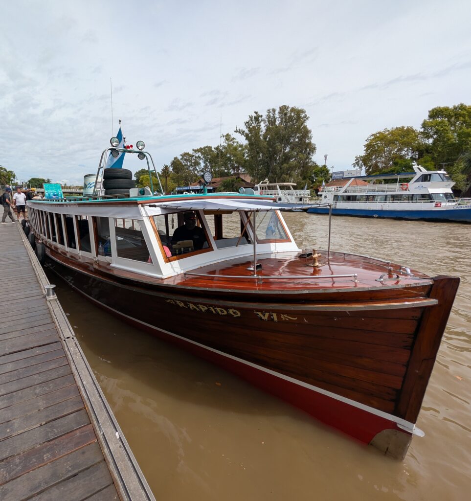 We left the market area and walked back to the main area of town near the train station and saw some of the many historic rowing clubs. This area was known for these from the late 1800’s. We were passed by a horse driven cart filled with cardboard! That was unusual. Now we came along the Tigre river, briefly to a bridge, crossing over it to get to another section of town. Then we came to the Paseo Victorica, the main walkway/promenade back along Lujan River. It was here that we found a boat tour. It was to do a loop and last one hour. We decided to do it, paying 16,000 ARS, or $11.47 for both of us.