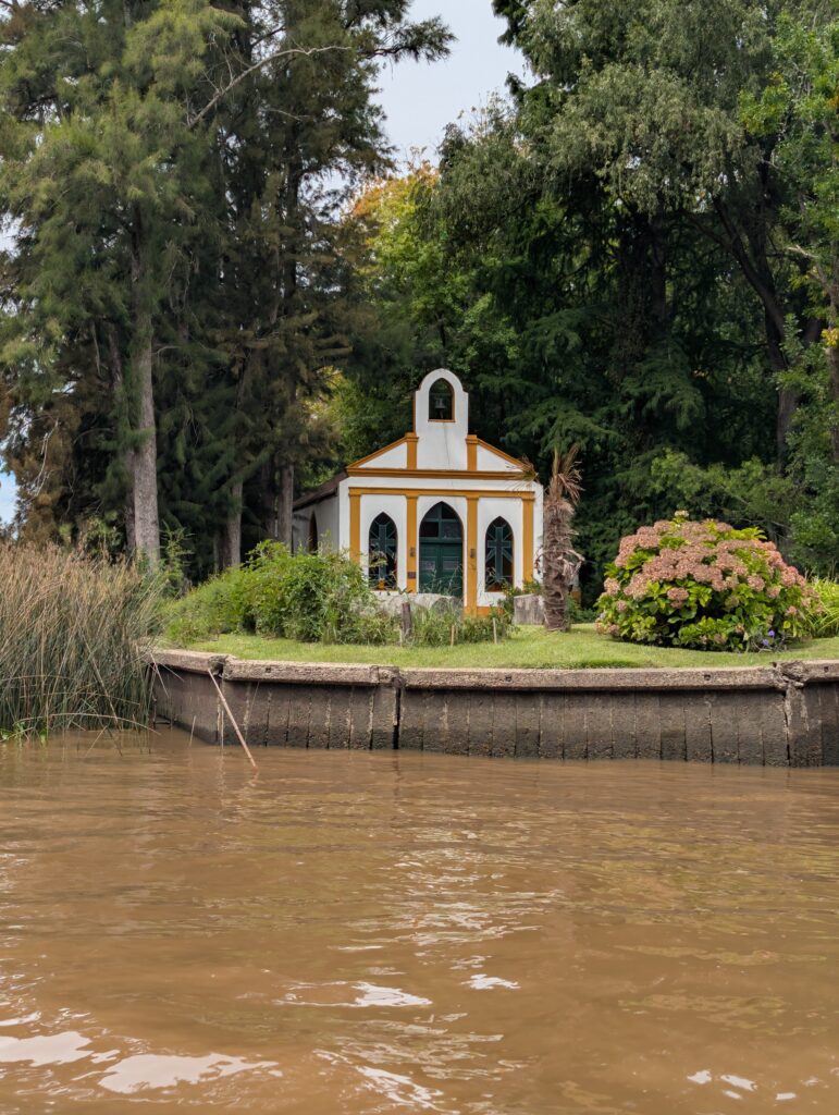 We boarded our boat, Rapido VI, and departed at 1230 on the Lujan river near the Tigre River. We turned up the Sarmiento River – it’s a smaller river. We settled in and gander at the mostly tiny houses lining the canal/river, and they were in differing states of repair. All the houses – at least 90%, it seemed – had their own boat dock! We noted also that a number of the places were for sale. There were much smaller “feeder” canals – these would be preferable to live in we thought…less traffic and noise. We turned onto Espera River and saw a grocery boat. Also noted that many smaller boats were driven by women with 3-4 children…school shuttling? There were also quite a few rowers out, even a couple of stand up jet skis. We passed a glass enclosed Museo Casa- one home restored, turned into a museum. That might have been interesting to see. Next we saw a small – like one room – church with a boat landing area. Here we turned onto Angostura River, then onto Carapachay River and returned onto Lujan River to complete our loop. We saw a few derelict larger cargo type ships on this river and also a former casino turned into the Museo de Arte Tigre. With that our boat parked and the tour was over. We disembarked and walked to the Art Museum.