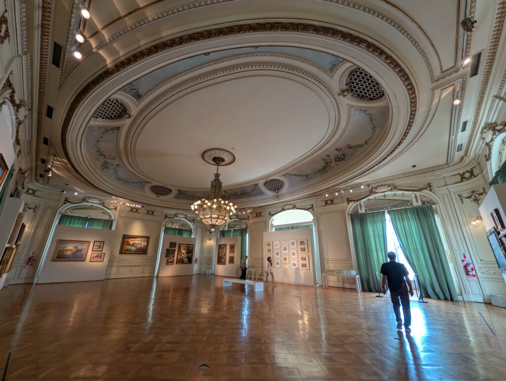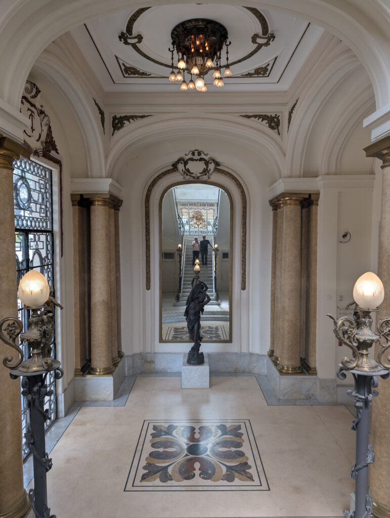 We went into the museum, paying 14,300 ARS, or $10.25. Most of the main art works were donated from one collector, and were more modern, not our style. But we loved the building. It was fantastic and beautifully restored. High ceilings, chandeliers throughout. The upstairs was like a grand ballroom. In here was a display of drawings of Tigre, to help preserve the old town. I found these drawings great as well.