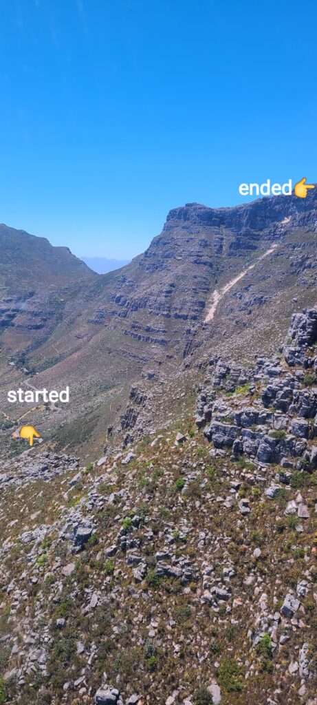 Then we all went to the restaurant for coffee and just to relax. It took us 2.5 hours to get up to the top! After we finished our coffee and were relaxed, now it was time to descend!! But here we forked over some money and took the Table Mountain Aerial Cableway down! This was stunning and well worth the money. We could enjoy the scenery without worrying about path.