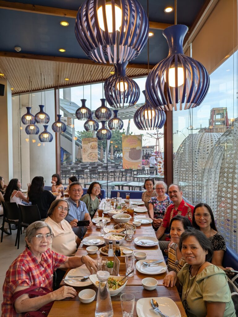 The brethren then had some appetizers and we all fellow-shipped. Then we were invited to dinner with a group – I think were ten total. We were squired in one car with two ladies and a young lady driver. We all met back up at Chika-an Sa Cebu where we ate. I ordered a Sizzling Tuna Belly and Jeff had Grilled Tuna Panga, of Tuna Jaw or Collar. They ordered a large set menu, two soups and a few other dishes – including a water spinach, and veggie one. They shared all their dishes but did not seem to eat any of ours, until midway through the meal. Again they all paid and wouldn’t take any money from us. It was good fellow-shipping and making new friends. Finally, we were all satiated and left, strolling a bit by the sea on a promenade. Where the restaurant is located is on reclaimed land, so we were right next to the water. Since it was now night, the lights of the city shown, glowing up buildings and a distant bridge. The young lady driving us said it is the longest bridge in the Philippines. From here we said goodbyes to most of them and now only one other lady accompanies us and our driver.