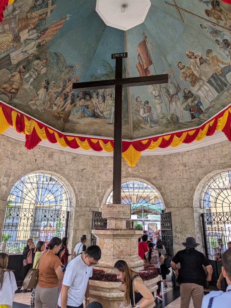 Now we continue on our venture tour of Cebu. The fifth stop was statue of Jose Rizal. Rizal is a Filipino “forefather,” so to speak. His writings helped advocate political reform and Philippine Independence. He was executed by a Spanish firing squad because of his writings that inspired the Philippine Revolution. Next and sixth was Magellan’s Cross. It is a covered pavilion with a wooden cross that is supposed to encase the original cross Magellan planted in 1521. It was a very busy site. Seventh and the last of our tour. Basilica Minore del Santo Nino. It was just before 1400 and the church was filling up. It was large inside, had a huge back-lit altarpiece, and had high vaulted ceilings painted with various depictions of Philippine history. We walked about the building and exited back through the main entry.