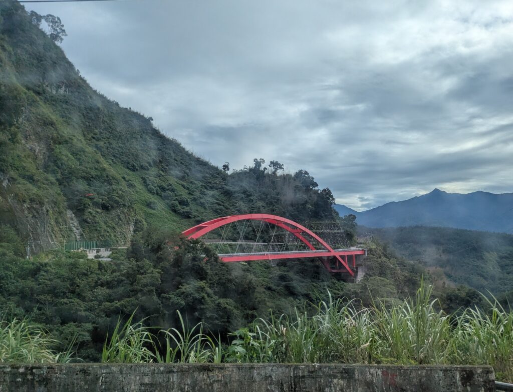 It is supposed to be a spectacular, scenic train ride up into and down out of the mountains – same, same, but different. Along the way, dawn gave way to daylight as we left Chiayi. Our bus driver seems grumpy and not fully awake, but he drives fine, so not complaining too much. It was around 0700, that the bus was out of town and started ascending into the mountains that we hadn’t even seen until this point, due to the clouds being low and blocking the scenery, then the clouds teased us as they would open to valley vistas and mountain views – only to go back into another layering shroud. Sometimes the clouds seemed to be creeping up mountains… that was kind of cool. We passed through small villages and slopes of tea plantations.