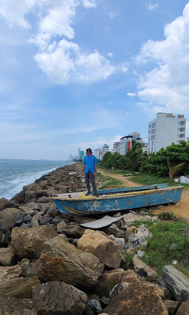 Our host was waiting at his place. We had not been able to get in touch with him, because we did not get a sim card – due to very, very long lines at the airport. So it was very nice to see him! The second floor apartment is all ours! It is a three bedroom/3 bathroom with a living space and kitchen, but the other two bedrooms/bathrooms are locked (which is fair). It is still quite big enough for us, and our week in Colombo, Sri Lanka. He showed us the particulars, the cooking area outside, and the roof top, which has some good views. He even offered to take us in his car to show us about some!