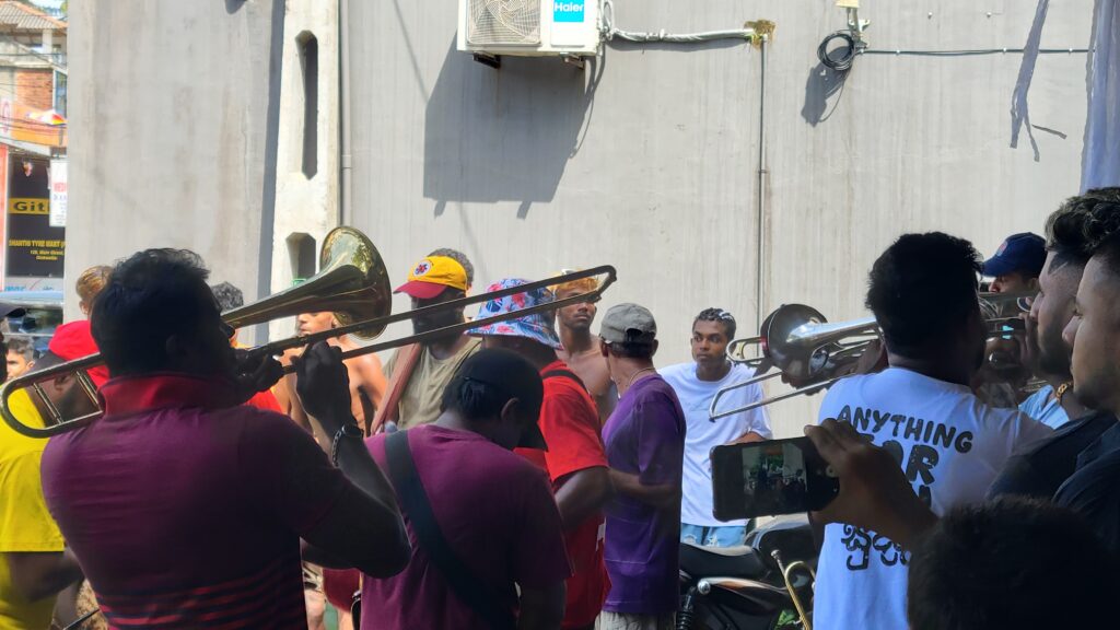 Yesterday, we had breakfast of Muesli and yogurt. I redressed Jeff’s foot with a waterproof dressing. Then we went out and about. It had rained a bit just before we had gone, so we should be good. We went to the store and got some water. While we were waiting for the water to be filled, we witnessed a holyday celebrating band. It was right in front of the store, and boy, was it loud. It was nice to see locals come and listen to them. We went back via a tuk-tuk and unloaded our stuff.