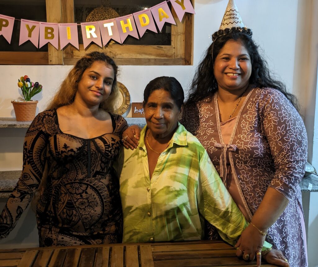 We got around and showed up at 1315. She wasn’t there but called one of her workers and spoke to us, saying she was 5 minutes out. While we waited we had a few bites of roasted peanuts. Rosie showed up and we had passionfruit drink, while she discussed the agenda; Pumpkin Curry, Dahl Curry, and Okra Curry. We nodded, and she asked anything else. I reminded her of Egg Hoppers. “Oh, yes” she said and discussed it being her birthday. She invited us for supper tonight to help her celebrate and eat cake. We agreed to come. Then she got into class mode: discussed rice flour because this is the flour for Hoppers. Also that the rice needs to be presoaked and sun-dried, not steamed. Then grind rice to made it into the rice flour. We also were shown how to make coconut milk. Now, we watched Rosie and a helper make the Hopper batter, and demonstrate the making of a Hopper. We ate the result – one each – with gusto! (Recipes will follow.)