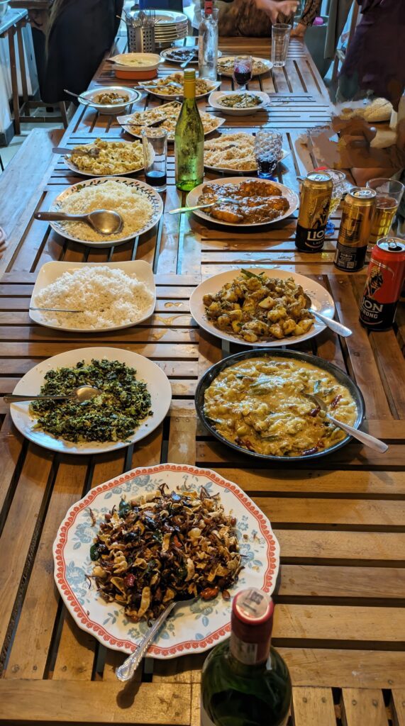 Now to Rosie’s – to a big birthday bash! There were around thirty people all told! It was a mix of Rosie’s local family, friends and her foreigner friends/family. She personally welcomed every person and had a photographer snapping photos. (He is a young man trying to start, and Rosie is “helping him out” – as seems to be her way!) Next came the food!! It was so much – probably same amount of dishes as their were people! Meanwhile we were entertained by a ten year old boy. He gave us history lessons of different countries that we shouted to him. Actually, he was amazing!