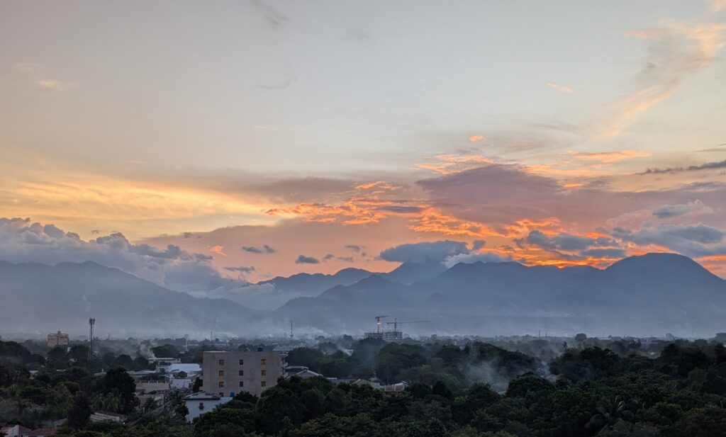 Finished, we went back to Dumaguete and to the Robinson’s Mall/ supermarket. We found our items and went to checkout. The lines are always long and you just have to plan on it taking… forever. We finally got through and scooted back to our place. We unloaded and cooled off. We went up to the roof for sunset view over the mountains that we were closer to earlier. For supper we had leftover slaw, last of the hummus with crackers, some BBQ corn nuts, and bit more of the mango butterscotch bars. Then we watched some YouTube, I blogged and Jeff read. Another fine day!