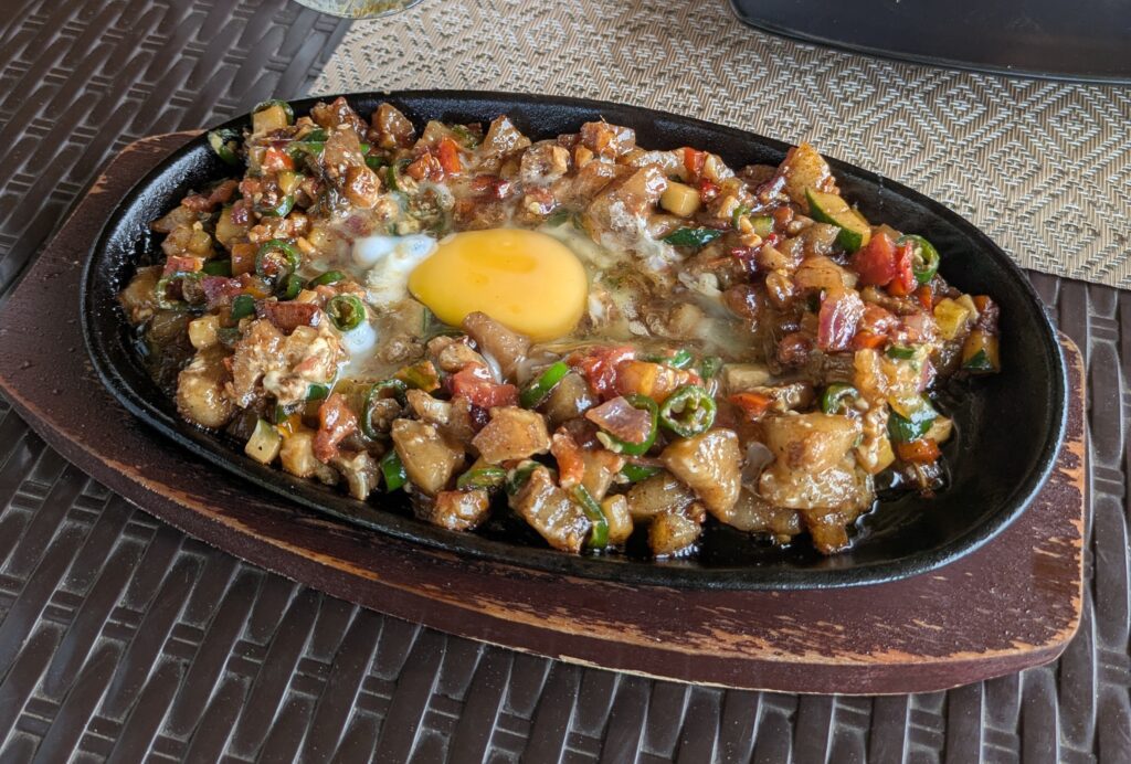 Around noon, we headed out on the scooter. We had another waterfall in mind. But as we were heading there Google maps lead us astray. We decided to just keep going uphill as far as the road went. That turned out to be at Bashaco Mountain Restaurant, which was where Baslay Highland Brew Coffee is. They sell Philippine Baslay Forrest Coffee. (I did not try it, because I did not need any.) The place is up at 2600′ elevation, with sweeping views down the mountain, to the coast line and then the ocean to the unknown horizon due to haziness of the clouds. It was cool and just refreshing to sit and enjoy. While we waited for our food, we saw four or five, free range turkeys. We haven’t seen those in quite awhile – since Vietnam on our motorcycle tour, I think. Our food arrived – we had a Pork Sisig, which was pork seasoned with Calamansi, onion and chili peppers & an egg, all sizzling on a hot plate; and an order of Potato & Mushroom Fries, which was fries with a sauce and mushrooms. I had a Calamansi and Honey Slush; Jeff had a Buko Shake. The meal cost us 742 PHP or $13.19.