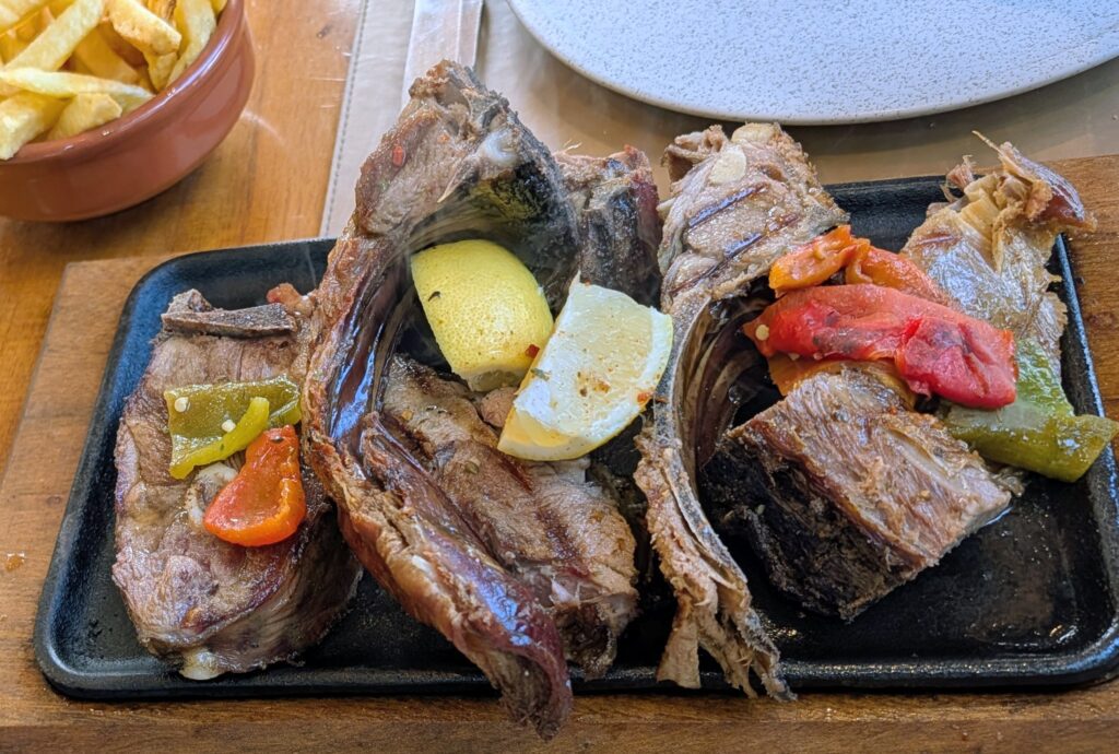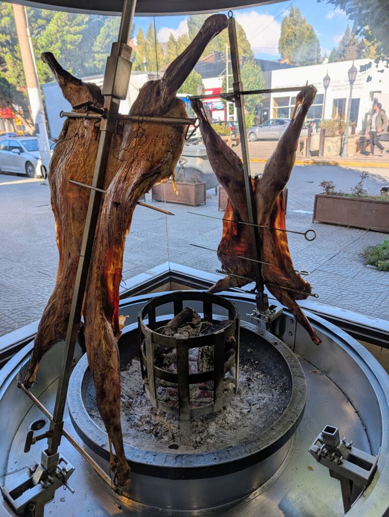 With that we left the Glaciarium, very impressed, but hungry. When we arrived in town we went to Merino, fuegos de patagonia (which means fires of Patagonia), Asador-Parrilla-Resto. There were great reviews on their lamb here. We ordered Almuerzu: Cordero a la Estaca p/2 personas; ensalada; papas fritas; and postre, which is Lunch: Spit-roasted Lamb for two people; salad; French fries; and dessert (a dish of blended berries and cream). We also had a bread plate they gave us, water, and a bottle of Gran Reserva Fin Del Mundo, a Patagonian red wine maritage. We enjoyed watching the showcased spit roasting the lamb almost as much as the meal. 👍🏻 We paid 152,240 ARS, or $109.81 for the meal and “show”.