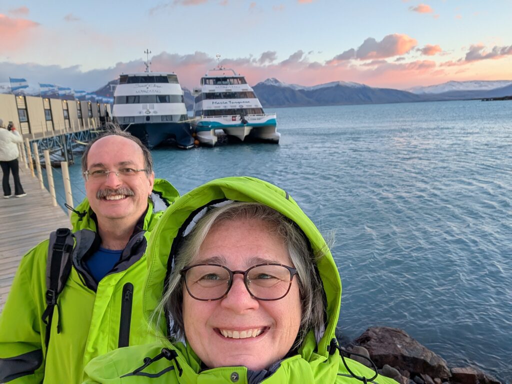 We arrived at the dock and boat by 0820. We were going on an eight hour cruise of different glaciers. Our ship is a catamaran called Maria Turquesa(which means ‘Spirit of the Glacier’) with the Marpatag Cruise Line. We checked in with our park pass; boarded the boat; found a seat; and ate one of the sandwiches we made before we left our place – waiting for the boat to fill. 0853 we were underway.