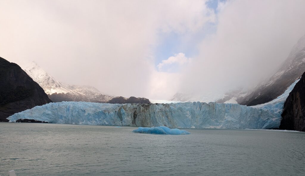 Once back on board we ate our other sandwich. Around 1300, we arrived at Upsala Glacier, with at least three others that descended into an arm of the lake. The boat is only allowed to go within approximately six miles of the face. In 2013, a massive section dislodged causing a huge tsunami! So the national park limits how close boats can get to these glaciers. The sun came out and it was incredible. There were many icebergs between us and the glacier. The Upsala Glacier itself is the third largest in South America, second largest in Argentina. It touts 765 square km (475 square miles) of surface area which is more than Buenos Aires land area!! We were too far away to see any calving or close details of it though.