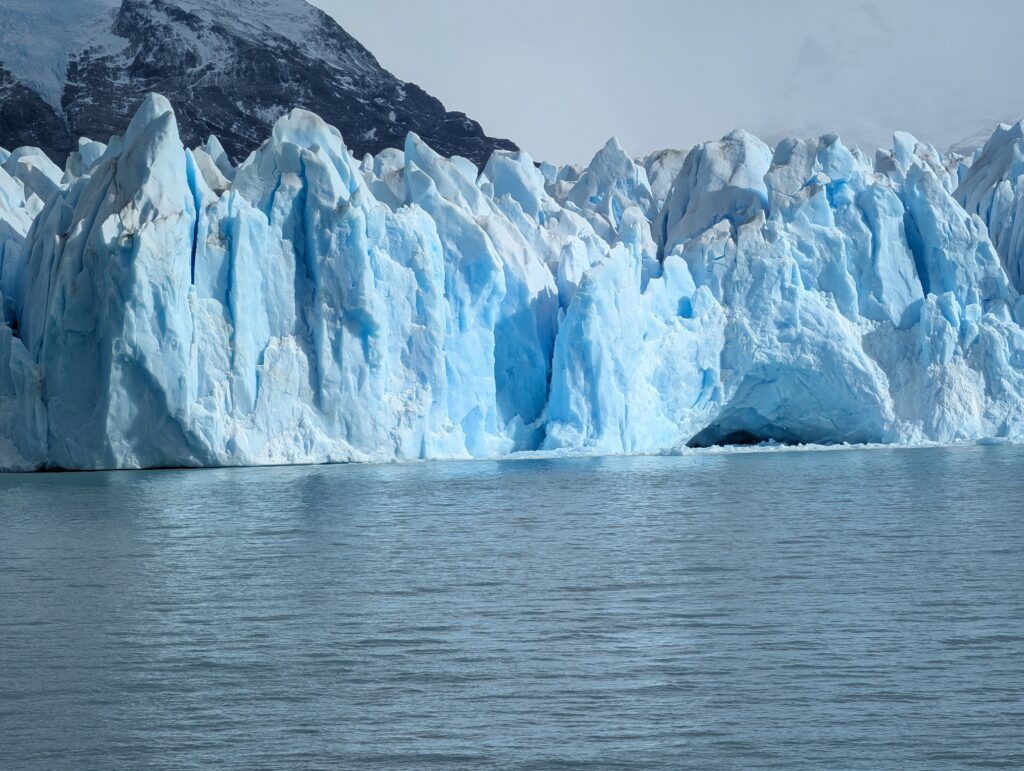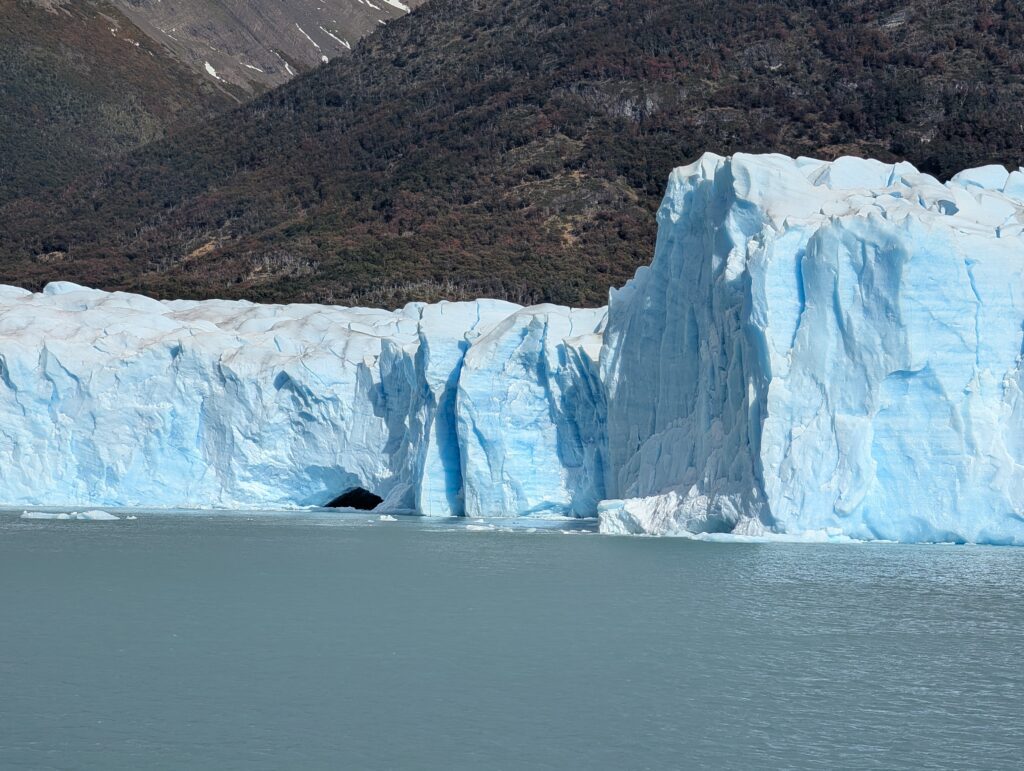 Around 1040, we passed by Totalizar Glacier, an example of a hanging glacier – It does not come to the water’s edge. At 1100, we arrived at Spegazzini Glacier. This glacier is the tallest in The Glaciers National Park, towering around 135 m or 440 feet above the water–and 170 m or 558 feet below the water! The boat pulled very close(less than 300 feet) and we spent 30 minutes viewing it. Spectacular! It is considered a glacier in equilibrium, that is not retreating or advancing. The national park narrator said it is the tallest. The sheer size…amazing!