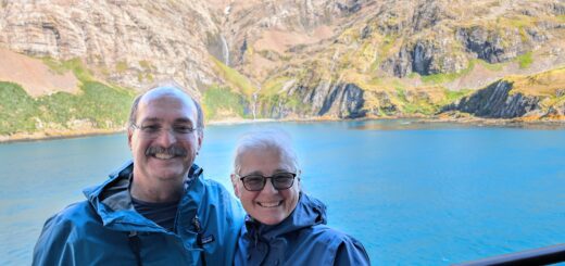 We arrived at the dock and boat by 0820. We were going on an eight hour cruise of different glaciers. Our ship is a catamaran called Maria Turquesa(which means ‘Spirit of the Glacier’) with the Marpatag Cruise Line. We checked in with our park pass; boarded the boat; found a seat; and ate one of the sandwiches we made before we left our place – waiting for the boat to fill. 0853 we were underway.