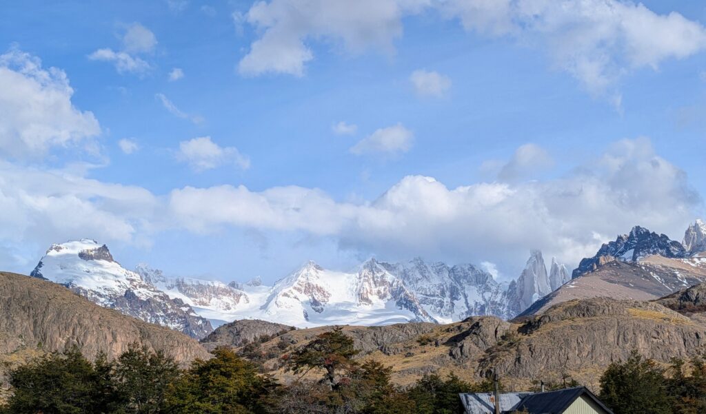 The rain really came down while we were eating. Once in the car we drove around the little village of El Chalten. It’s been built up because of tourism and thrives due to it. Most of the businesses are restaurants, places to stay, and convenience stores. The town is only 1400 population, with the side roads still being gravel. Anyway, we arrived back to our place, I blogged some, Jeff read. My sister was busy, so will catch up next week. We had grilled cheese sandwich for dinner, with sliced cucumber. Then we video chatted with Jeff’s sister and her husband. We went to bed around 2200, to the patter of continuous rain.