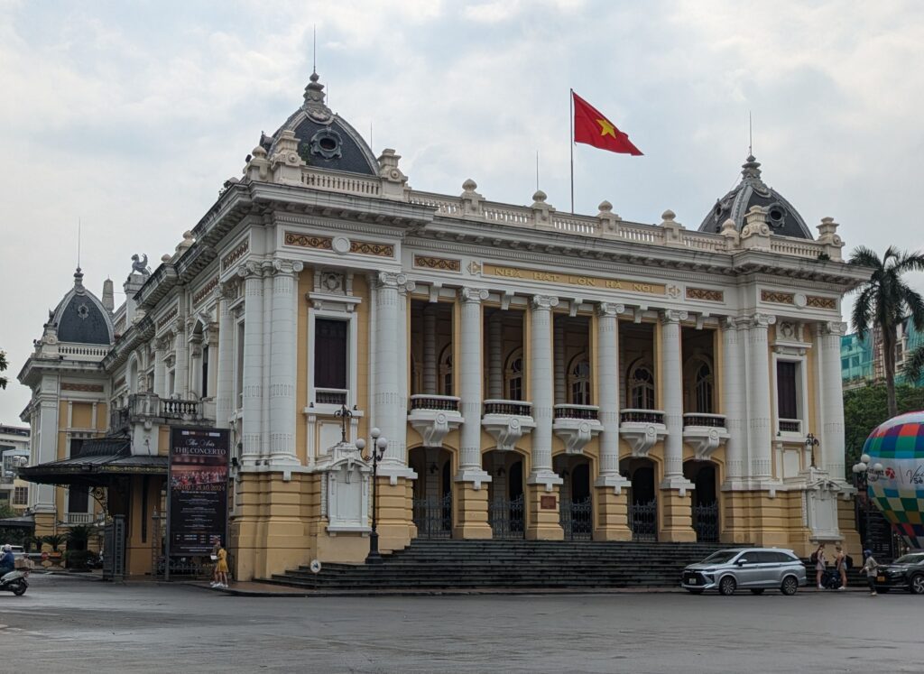 Today, we have a full day of trekking. But first we started with our Javas and a yogurt each, a bit of bread with PB or butter. Then we set out, first we went to The Hanoi Opera House. It was built in 1901 to 1911 by the then French colonial administration, therefore it is a great example of French Colonial Architecture, but the only way inside is to go to a show. It so happens that performing tonight is – ‘The Arts of the Concerto, the 3rd International Classical Music Festival’. We were interested, so we bought tickets – Yeah!! (more on the performance later).