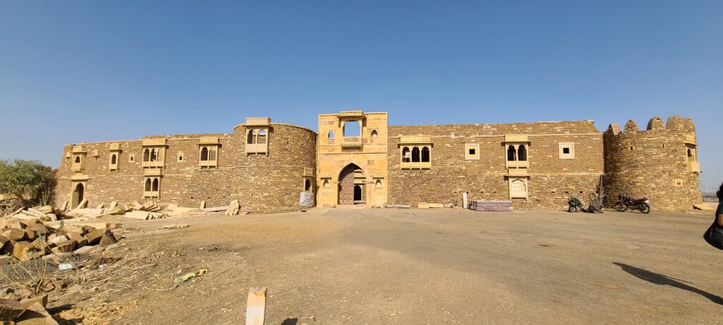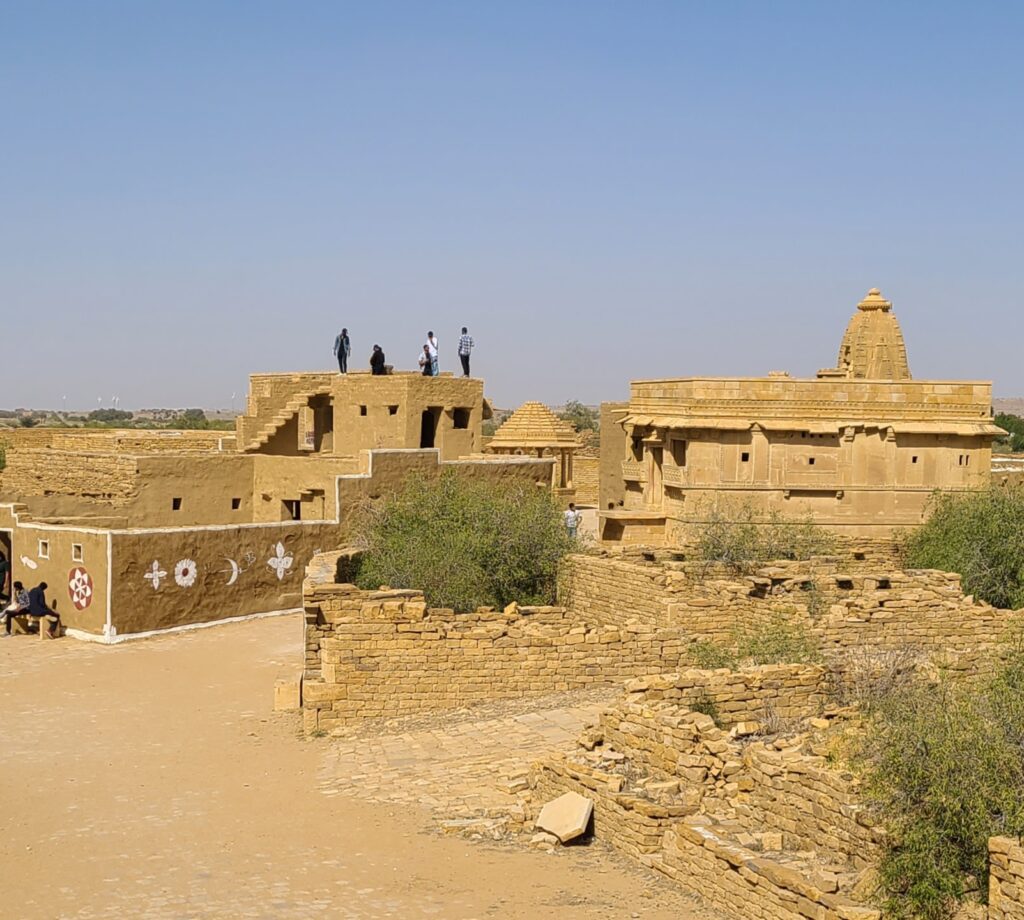 We arrive at our first place of the tour, Kuldhara. It is an ancient abandoned, ‘overnight’ village with a folklore legend involving this abandonment. It might have been due to atoricities of a leader of the Jaisalmer state; maybe due to an earthquake; or maybe (most likely, we think) due to lack of water. Whatever the reason, many locals believe it to be haunted. All that remains is a few reconstructed buildings, one being a temple. The rest is brick piled foundations scattered out in a grid- like pattern of a city. The village was cleared out in the 19th Century, so there was paved “roads” that we meandered about. Since we were given 30 to 45 minutes to explore, we took advantage of it. Hardly anyone else wondered away from the few reconstructed buildings. It is always a thing for me to image what each building was and any activity was happening. It helps make it real. We rounded up and moved on.
