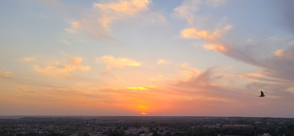 We stopped by a snacks-chain place here in India, Famous Food Adda. We had steamed corn cheese momos and peri peri fries – which has been the spiciest hot food we have had in India. We finished those fries, but we were using a bunch of ketchup to lessen the zing! Reminded us of Jeff’s mom, she used to use fries as a platform to get her ketchup. 😂 Then went back to our place for siesta. We took in sunset at the hostel as well – gorgeous!