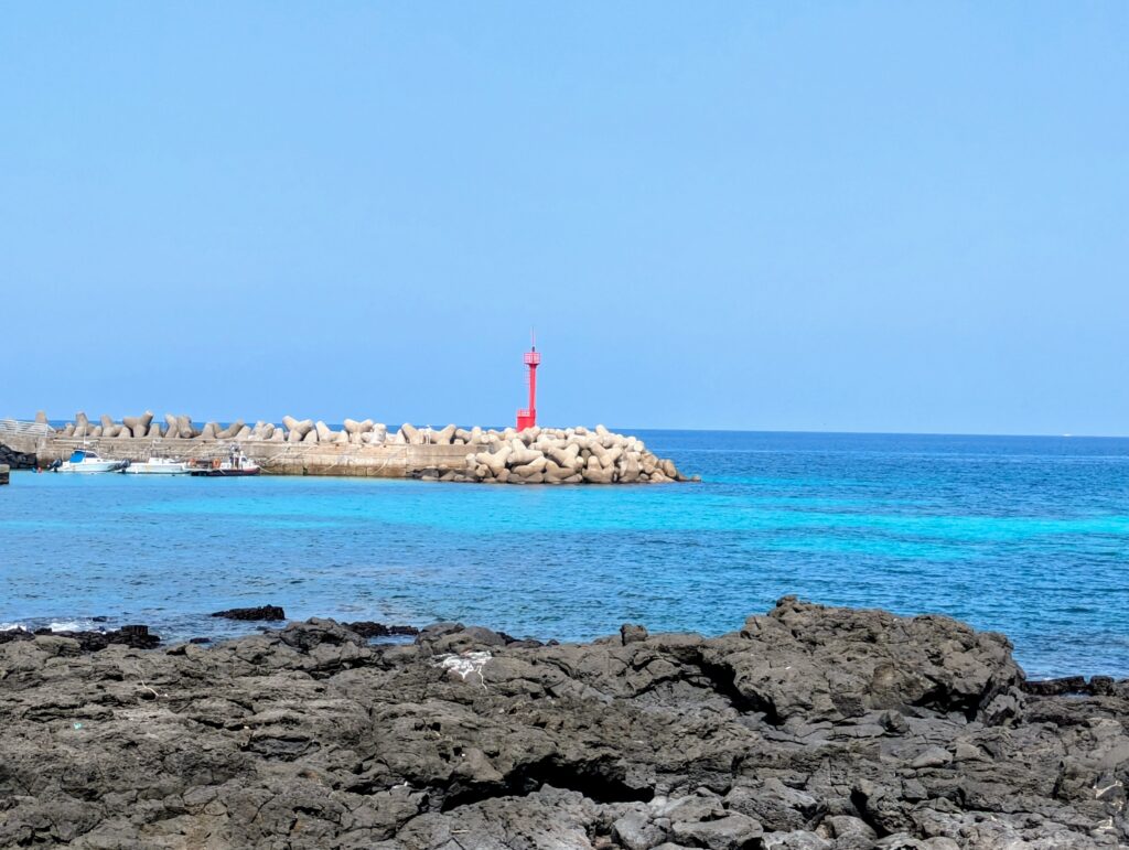 We regrouped and stopped at a Subway. We shared a Cheese, Omelet and Ham sandwich. It cost us 5,100 KRW or $3.56. We left when he found a scooter rental place. We walked there, and tried to rent a scooter for just today – the next couple of days call for rain. We started the process, but the rental place wanted $67 for one’s rental!!! That was double what the car was supposed to have cost… well that did not happen either! So Jeff found a local bus that went to the east side of the island. We had to take advantage of the sunny day we had been blessed with – it may be our only one.