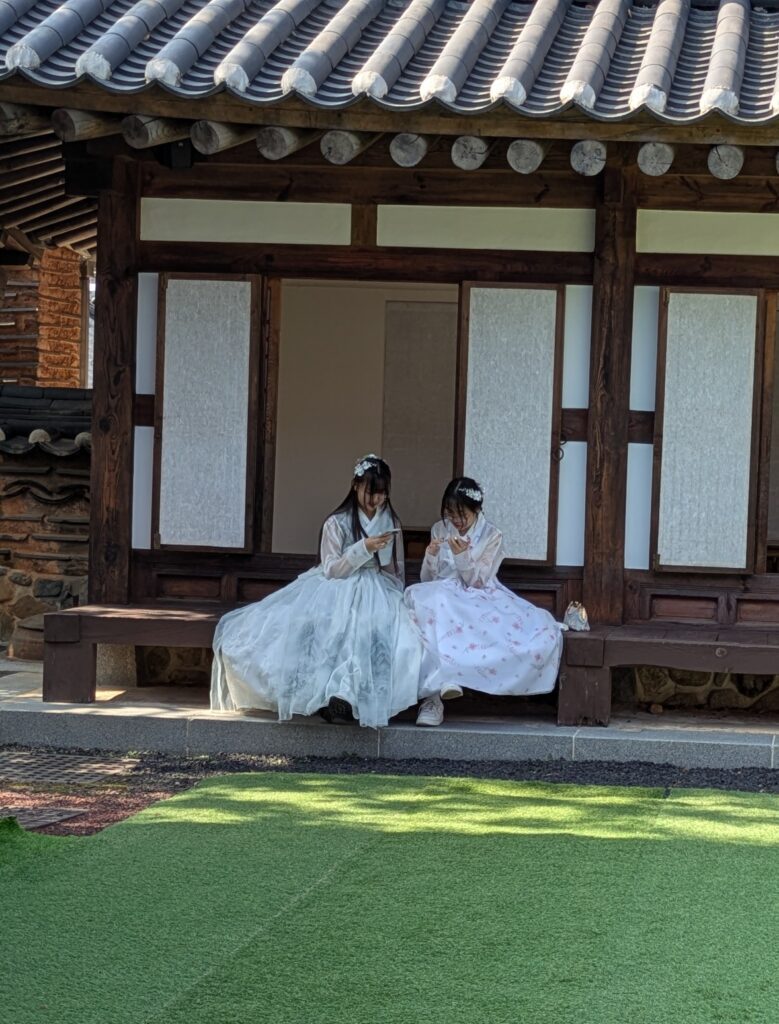 We then walked down “cat alley,” with many cat paintings and figurines of cats. We then came by a house advertising it as “The House of Four Doctoral Degrees.” One family has inhabited it since 1965 and the three sons and one son-in-law hold PHD’s from Korea, France, and USA. The home was a guesthouse for five years previously, the placard also read. It was fun to read the pride. Then we came up to a Hanok with a courtyard… it seemed to just be a hang out spot and for pictures.