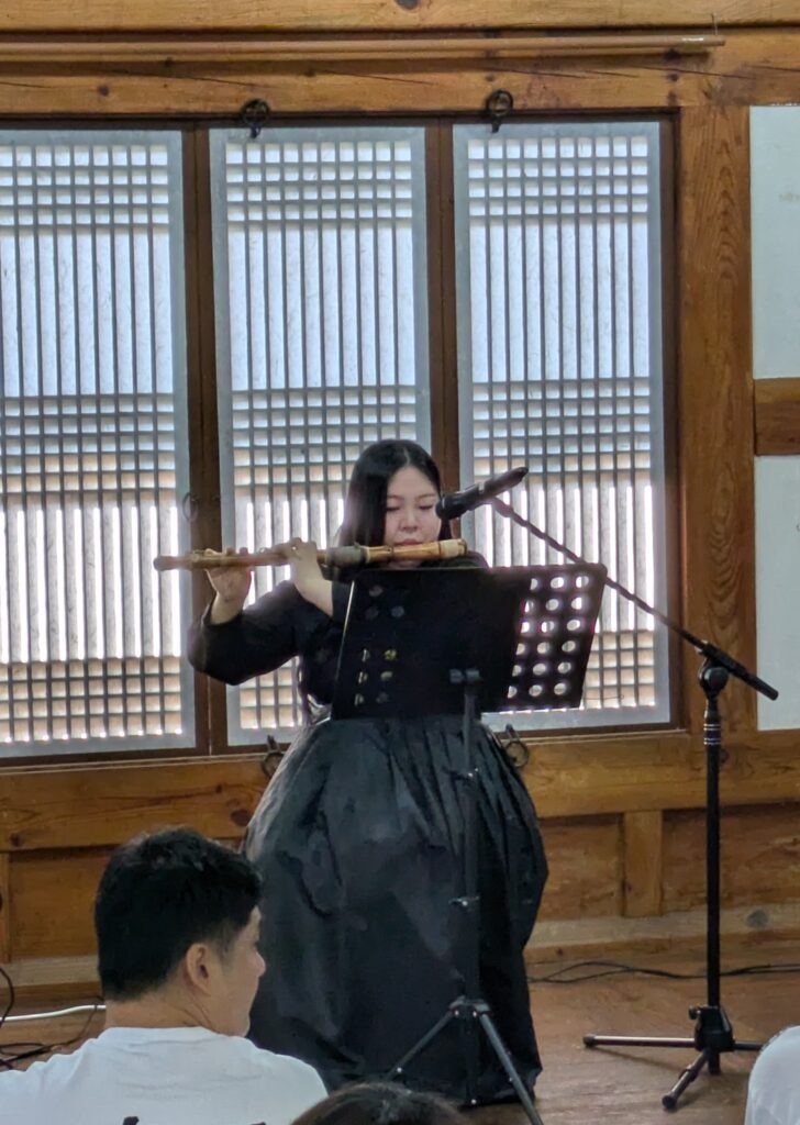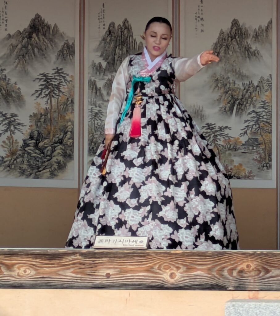 At 1400, we went to the first, free concert. There were 22 people, counting us. The performance was with a solo “flute” – called a Sanjo Daegum – accompanied by a music track. People came and went. It lasted 30 minutes and she was good. The sound from the instrument seemed to be more of a “resonated” flute. We enjoyed it, enough that we went on to a 1500 free concert. It was a singing one. It was not very far and we arrived at 1435. We sat close as we were some of the first ones to come. The performers came out and bowed. We watched the first set, a lady. She was doing… like a talking/singing stanza accompanied by a percussionist/drummer. The audience surprised Jeff and I. They became involved and shouted out one to two words every so often. It was kind of bizarre, but entertaining in a way – it reminded us of like – melodramas. We stayed through the second set, but left after this. If you don’t understand the language…