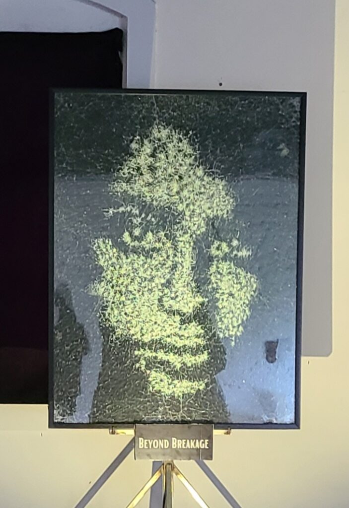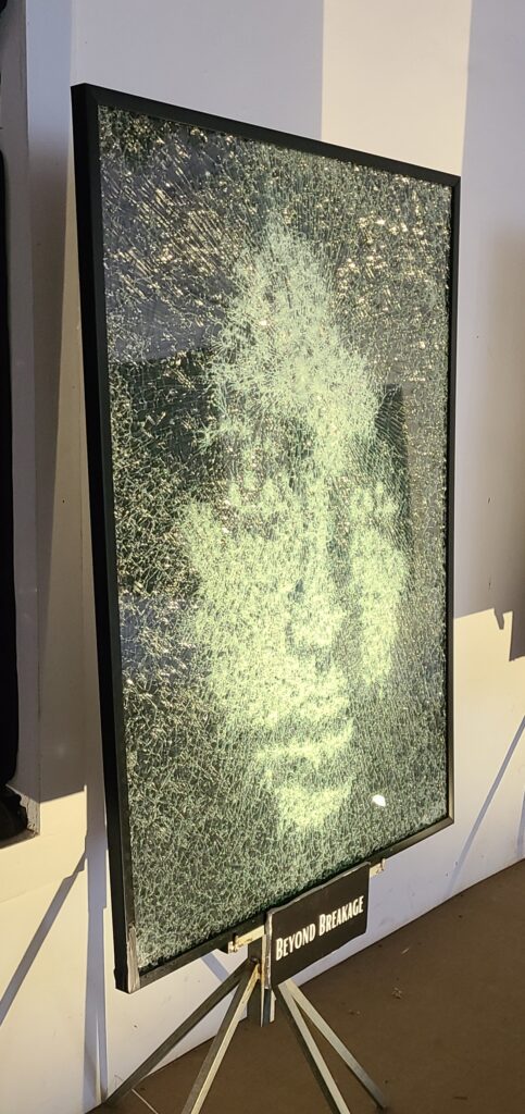 Next, we went basically to the end of the peninsula, and we happened upon an art exhibition. It had displays of various artists, and it was free. The artist, Joji Mazhu – whom we enjoyed the most, worked in media of glass, specifically “shattered glass”. He had used a hammer on a big piece of laminated glass. This caused it to shatter. But the art part is he made images of faces with different emotions. It was a pretty cool concept and he did a great job.
