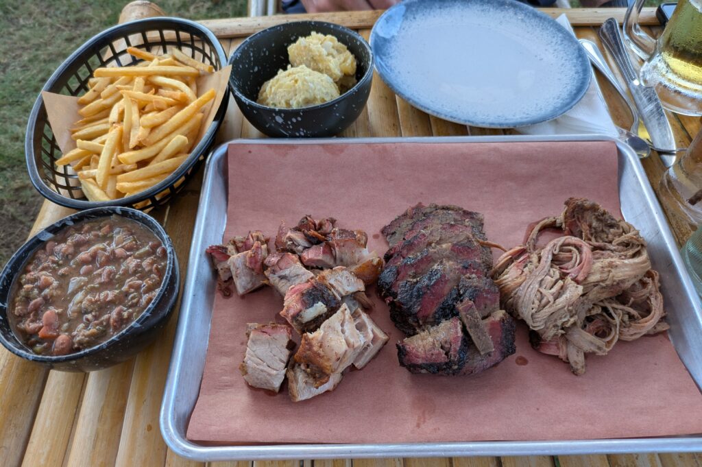 We left and went back to our place and had a siesta. Around 1800 we went out for supper at Joe’s Texas Koh Lanta Smoked BBQ. We found it by accident, but so thankful for that flier that advertised it! The owner is from Austin & San Antonio Texas, and has worked for seven years to get this restaurant going. He does his own meat smoking and BBQ sauce. We ordered “The Dallas” entree that serves one to two people. It was Wagyu Beef Brisket from Australia (165 grams/5.8 ounces); Thai Pork Belly & Thai Pulled Pork (in the same weights) served with Potato Salad, Cowboy Beans, and French Fries. The smoked meats were spectacular (and recalling them is making my mouth drool). Joe’s BBQ sauce was great with a black pepper kick. The sides were good with the beans the best of them. I had a glass of red wine – a Shiraz, Jeff had a large Chang Beer. We really enjoyed that meal, and we met and talked with Joe. He just opened the restaurant in January 2023, after perfecting his process and sauce for the five years prior! We wished him well, and happily paid the bill of 1,595 Baht with 200 Baht tip ($53.41 total). We hope he is still open if we get back here!