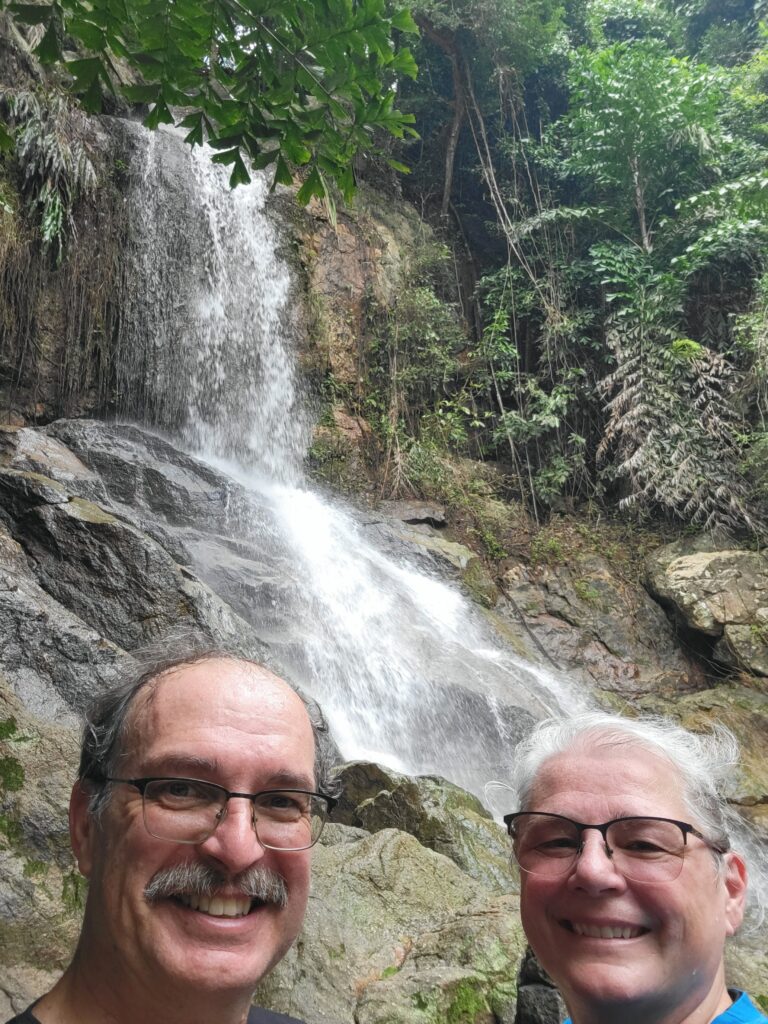 We found the Tan Rua Waterfalls. A zip line company, Tree Bridge Zipline, had set business up here. There was a cruise ship in the harbor today – so the zip line was busy. We found the trail and started the free hike up to the waterfall. Immediately and only once we had to dodge zip-liners! A bit into the trail, we came to a fork. There were two paths two waterfalls – we chose waterfall # two first. We were rewarded. The waterfall was stretched over a boulder and rocky, descending landscape. It was beautiful in an natural and “un”manicured way. We stayed a bit, then hiked back, taking in the other fork and smaller waterfall area. I love waterfalls – all of them. The sound of rushing splashing water… the best!