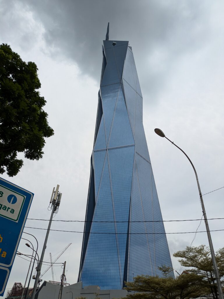 We now go to the base of the tallest building, Merdeka 118 (the number represents how many stories it has) in Malaysia, second tallest building in the world at 678.9m (2,227 feet). FYI… The Burj Khalifa – THE tallest building in the world – is 828m (2,717 feet). This building is still crazy tall – it hurts my neck to look up that far! Also this building is so new that it is not set up for tours yet and you can see this at the base. It is a maze of construction is still going on – for a parking garage, maybe??