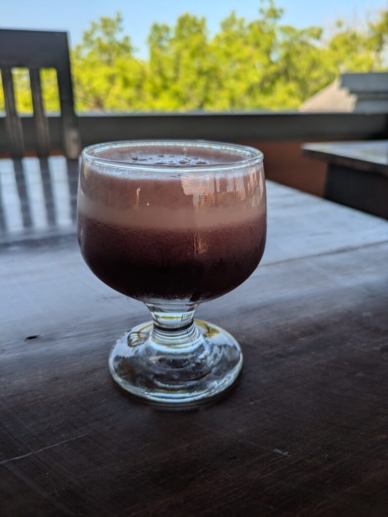 We spent the rest of the morning planning out stuff to do in Korea, and Jeff booked some things. Around 1340 we went out for lunch, choosing Wayan Restaurant. Sidebar: Wayan is a common name in Bali. It is commonly given to the firstborn male, so it is used a lot! Anyway, we ordered a Beef Rendang dish with rice and garnish of tomato & cucumber; and a Grilled Mahi-Mahi with sambal, mashed potatoes, and mixed veggies. Both were great, but I mostly stayed with the fish as it was less spicy. I had a “Bali Donix”- which was a serving of Hatten wine blended with pineapple. Jeff had a beer. We paid 251,000 IDR, or $15.15 for the meals. When we finished we left and stopped at the closest little convenience store for snack stuff for dinner.