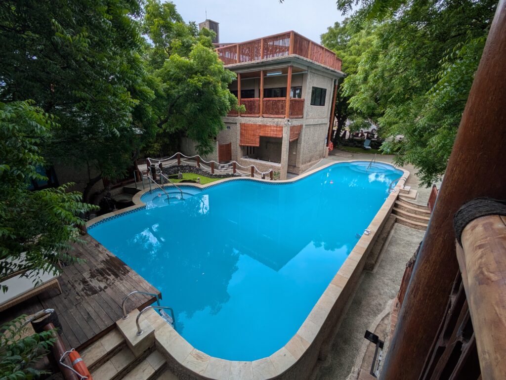 We went to breakfast around 0845. We were offered eggs: fried, scrambled, or omelet with toast. We both went for omelets, which had nothing in them – just eggs. We were given two kinds of jam: strawberry and pineapple; and butter. It was a very basic breakfast, but filling. When we finished we talked with our sisters from the rooftop of the restaurant with the volcano as a backdrop. (I forgot to mention yesterday, we did talk with my mom & her husband and our church back home.)