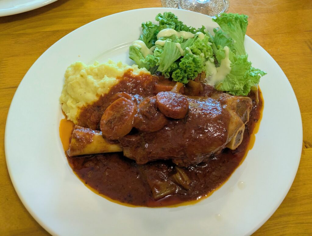 Around 1715, we went out for supper. We chose Don Ricco Delicatessen, which is more a full- blown restaurant in our thinking. Anyway, it’s an Austrian/western food cuisine. We were his only customers, ordering: Lamb Shank “Tuscany Style” slow braised with Mashed Potato, Carrots & Special Sauce; Austrian 3 Layer Pork Roast with Mashed Potato, Sauerkraut & Sauce. He was probably Jeff’s age and running the place all by himself. I had a Sangria Cocktail, which he said was a Mango Sangria. Jeff had an Anchor Beer. The meal was excellent and then he talked us into a dessert – a “Pancake filled with Cream, topped with a Vanilla Sauce and Whipped Cream. Wow, wow, wow! It was a superfine meal!! As we were eating dessert a man with his young preteen daughter came in. They must have known each other because the man and the owner went outside, talked and smoked. When they came back in we were finished and paid our tab… 168 RM, which is $39.67! It was a splurge, but so worth it!!!