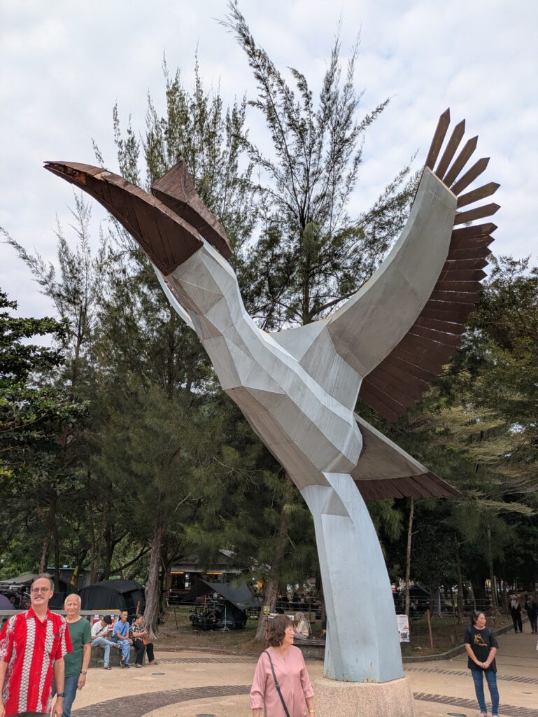 Around 1640, we left to go meet the brethren. We met at the Hornbill Statue, across from the Sarawak cultural village and right at the ocean. Someone had a drone and did a group shot of us all. Many Malaysians were here enjoying the ocean and National Malaysian Day, the independence of Malaysia in 1957. Anyway, Sunset happened, but not much of a show. We all loaded up in our cars to go to supper at Teo Seafood Buntal. We all sat in three tables of at least nine. They ordered table sets. This included: Oyster omelet, Fiddlehead Fern dish, Fried Prawns, Sweet Battered Fried Squid, a Whole Seabass with ginger, garlic and peppers, Sea Cucumber Soup, Lemon Chicken, a Curry Stir Fry of Snails (slang called “monkey penis” dish), and a bowl of rice each. There were definitely things neither Jeff of I would have ordered. But overall it was good and great to fellowship. I was able to WhatsApp briefly with my mother. When we finished, were told we could not pay. So Jeff made an another donation (he gave some during the service). We thanked them all and everyone left.