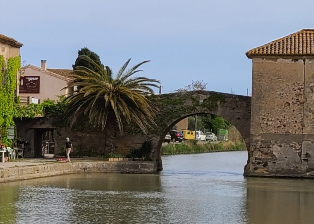 We stopped at Argens-Minervois and walked around, a quaint village. There’s a 14th century chateau. From here we boated around a big horse-shoe bend in the canal, and on to Ventenac-en-Minervois. At this town, we did our first French wine tasting!! We pushed on to le Somail and decided to “anchor” for tonight. We went to our first Grocery Barge – it’s a mini grocery store on a barge tied off on the bank! We ordered a fresh baguette and two croissants that we can pick up tomorrow morning. YUM!!! I can’t wait!